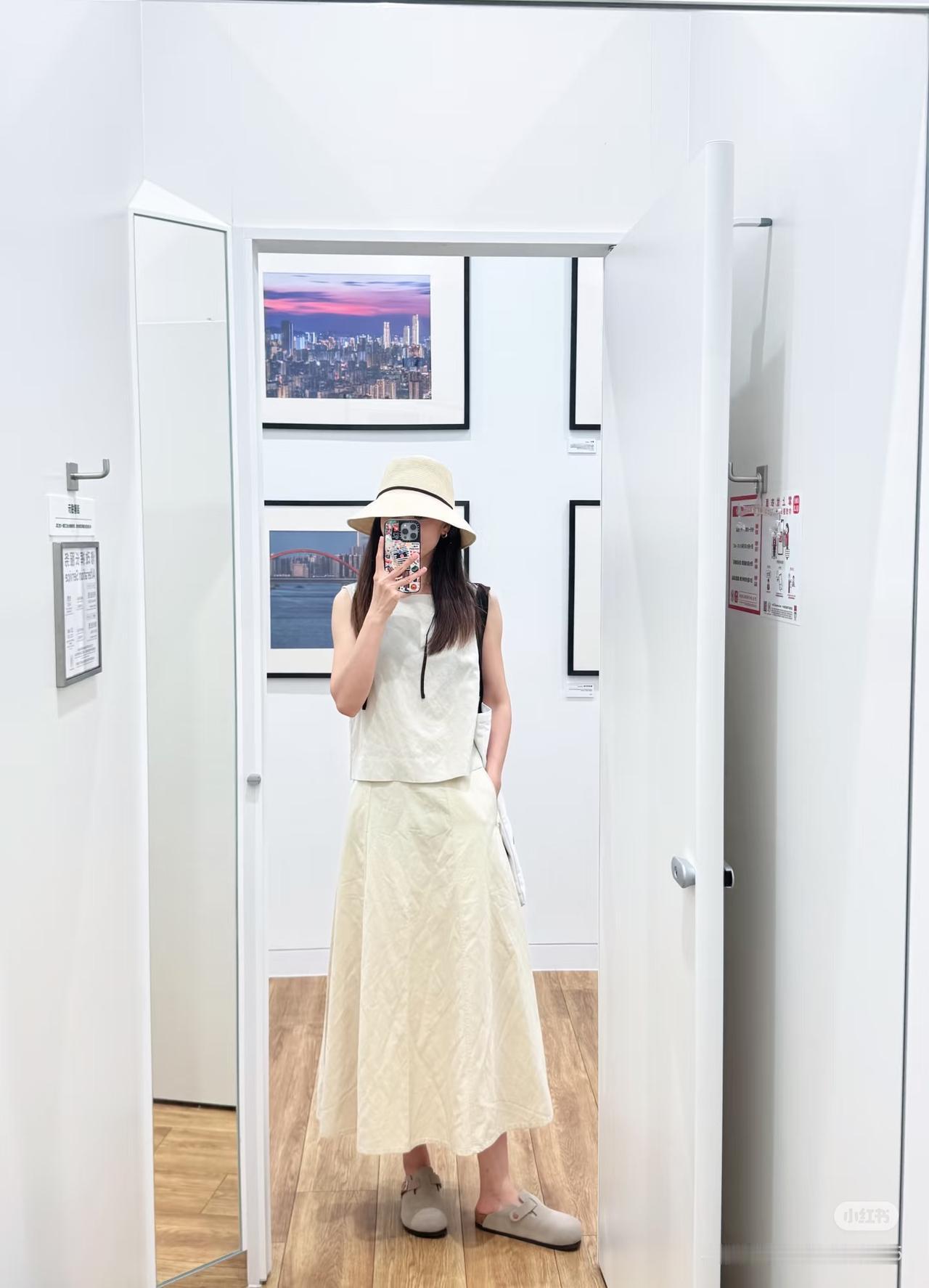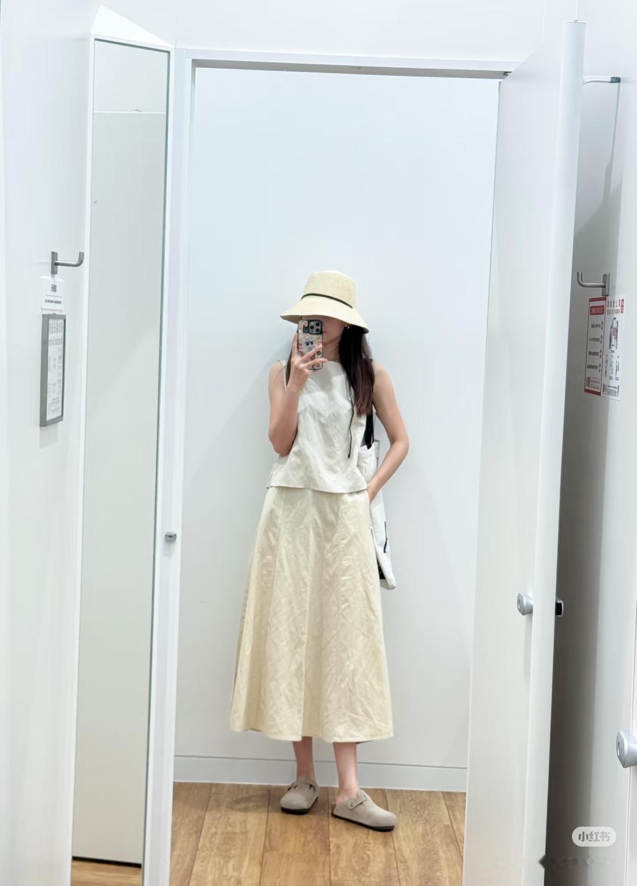 优衣库春夏上神裙~真的好日杂风!!! 梨🍐形身材太适合A字半裙啦! 搭配亚麻混纺背心➕勃肯鞋 低调气质太适合淡人 随性慵懒 喜欢❤️