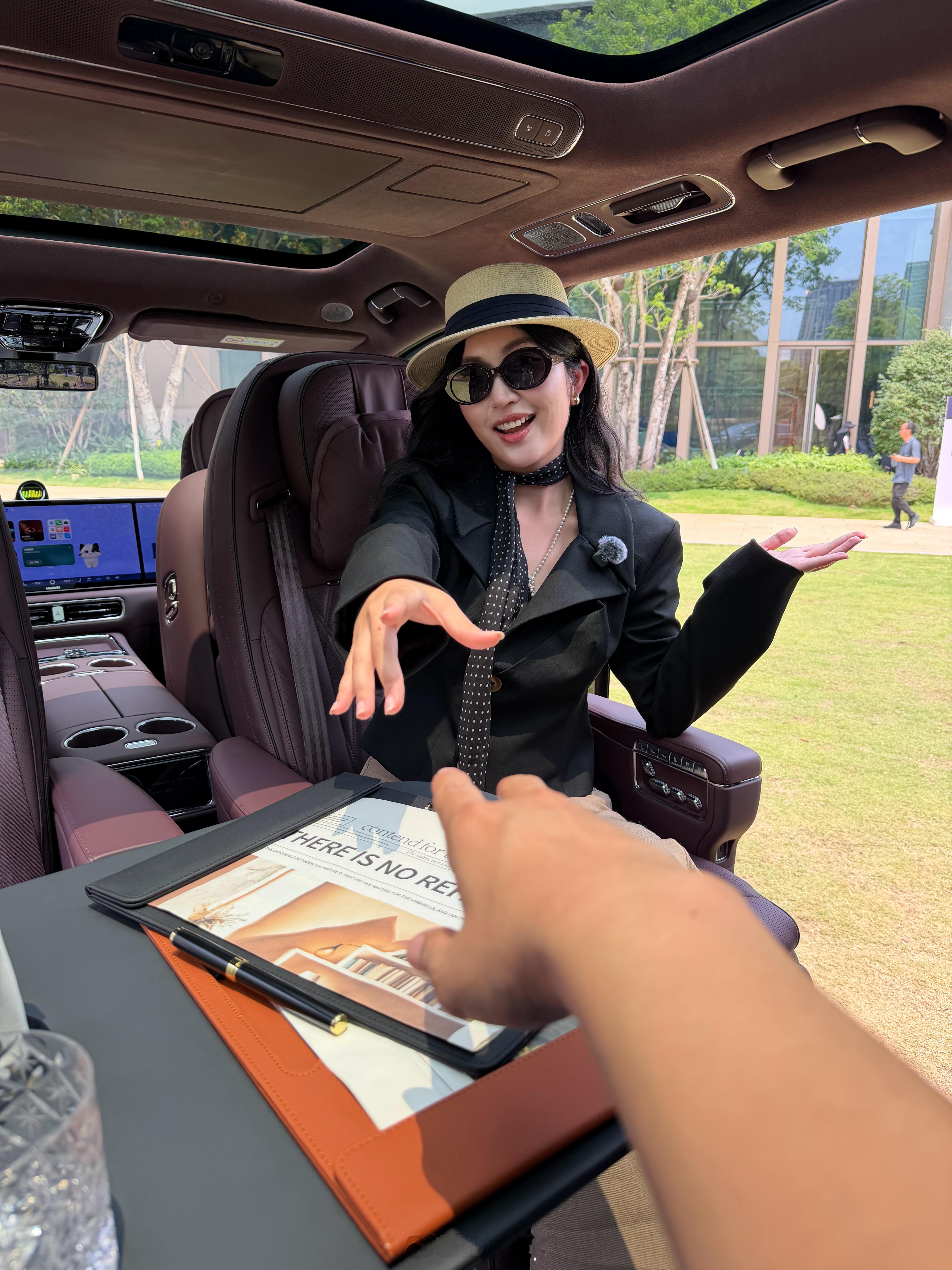 听说智界V9这车后排空间巨大,对坐模式都拉不到对面小姐姐的手,我不信!我一米八大高个,胳膊长腿长的,看到和在拍摄果断把倪宇宙撵下车去拉小姐姐的手,还真没够着,太可惜了