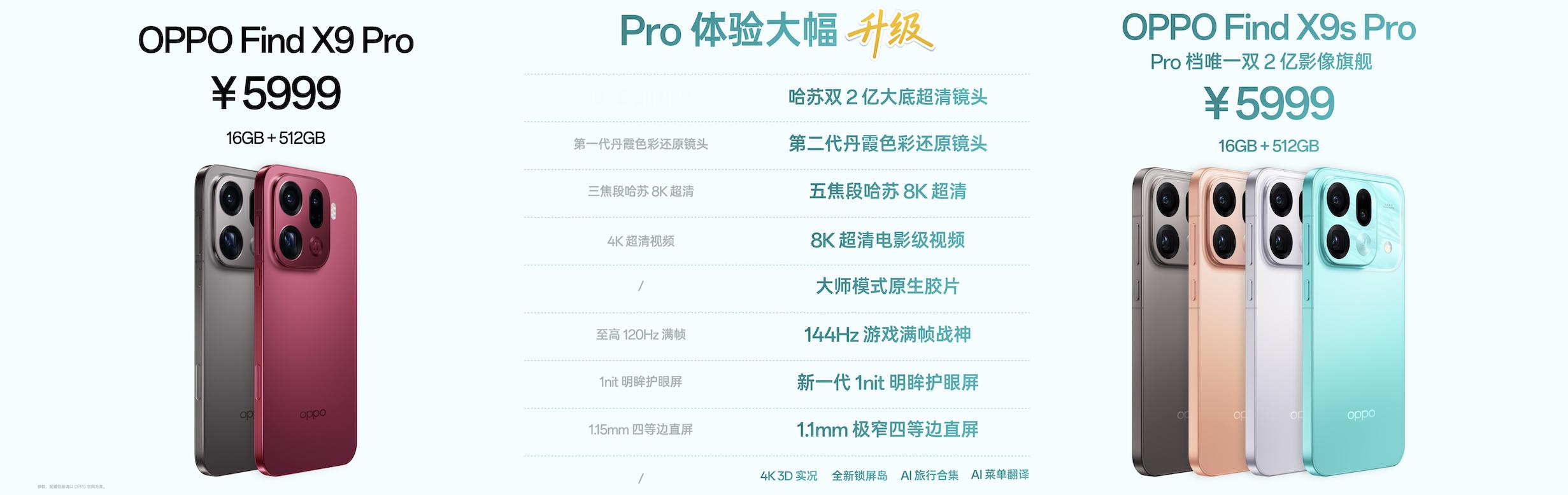 一图看懂OPPOFindX9sPro、OPPOFindX9Ultr