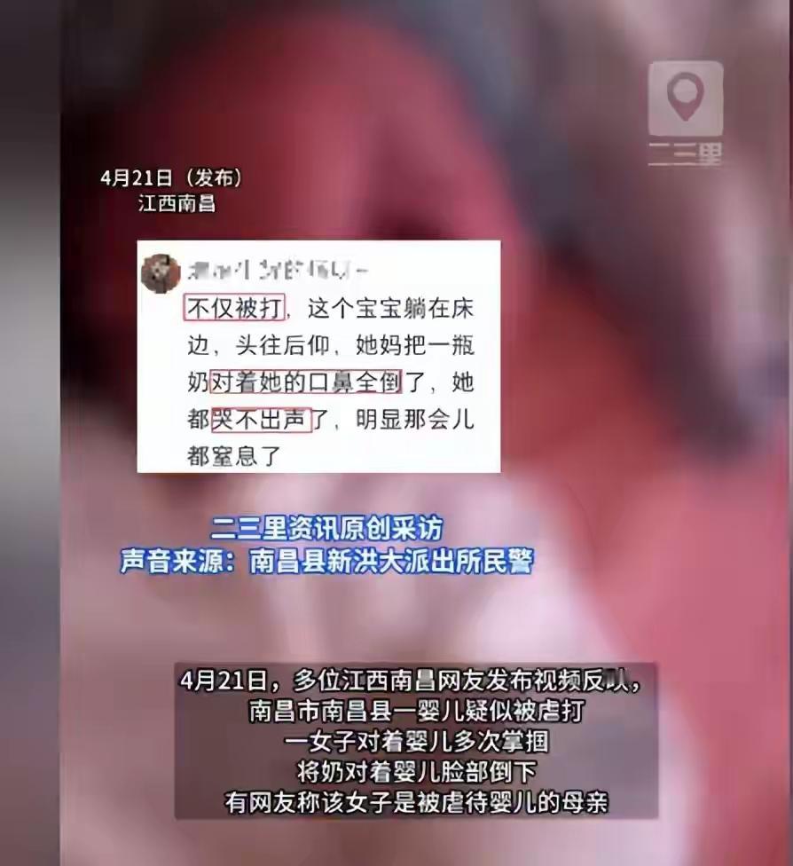 “太残忍了!”江西南昌,不满周岁的婴儿,被亲生母亲摔下,她殴打婴儿,扇婴儿的耳光,婴儿的脸被扇得通红通红的,她还往婴儿脸上浇牛奶,牛奶呛入鼻腔,这一幕幕,让人看着就揪心地疼,爆料的网友称,这个母亲疑是因感情问题,对着婴儿虐打泄愤。 这件事情发生在十几天前,现在案件已经移交检察院起诉。到底是怎样的母亲,才会如此对待自己的亲生骨肉。 21日中午,发帖人韩女士(化姓)向记者介绍,该虐婴视频是20日晚有人在一个宝妈群中看到的,拍摄者疑似是婴儿的母亲。视频扩散后,许多热心市民报了警。韩女士的朋友当晚直接赶到了拍摄者家门口,但家中似乎无人,随后前往辖区派出所报警。 21日,记者联系事发地辖区派出所。工作人员表示,相关部门已介入处置,已对视频中的施虐者采取强制措施,案件已移交检察院进行起诉。该工作人员同时确认,目前孩子安全,有专人照顾,相关部门正持续跟进。施虐者是否为婴儿母亲及事发原因暂不便透露。 江西南昌县虐婴事件引发全网关注,大家愤怒于施暴者的残忍,心疼于婴儿的无助,更应明白,守护幼童不止于事后追责,更需事前排查、事中干预、事后帮扶,形成完整守护链条。 事件曝光后,网友们理性发声,拒绝键盘暴力,呼吁完善未成年人保护机制、严惩施暴者,同时呼吁邻里多份关注,发现虐童迹象及时报警,用行动守护孩子。大家共识:育儿再辛苦,也不能将情绪发泄在无辜的孩子身上。 据知情者透露,这个母亲疑是因感情问题,才对婴儿进行虐打泄愤。 不管这个母亲出于什么原因,要殴打婴儿,这都是天理不容的。 不管这个母亲精神有没有问题,面对这样的母亲,就应该撤销她的监护人资格。因此应当另指定监护人,由婴儿的父亲或者其他近亲属当婴儿的监护人。 愿以此次事件为契机,全社会更加重视未成年人保护,完善机制、加强宣传,形成人人守护的氛围,让每一个孩子都能远离暴力与伤害,在爱与温暖中成长。 对此你怎么看?