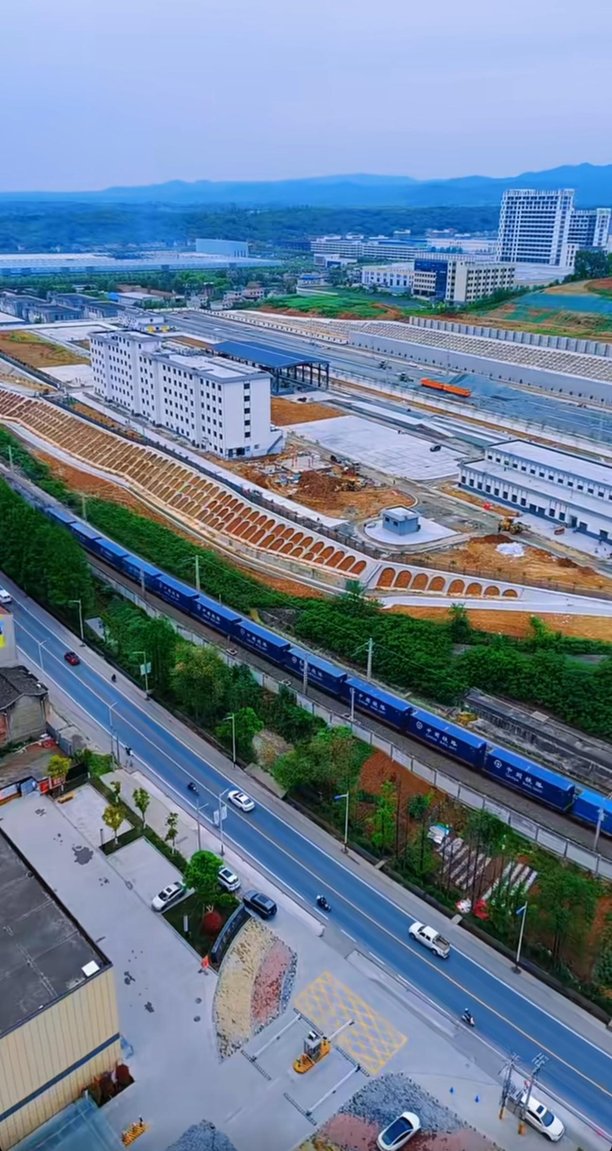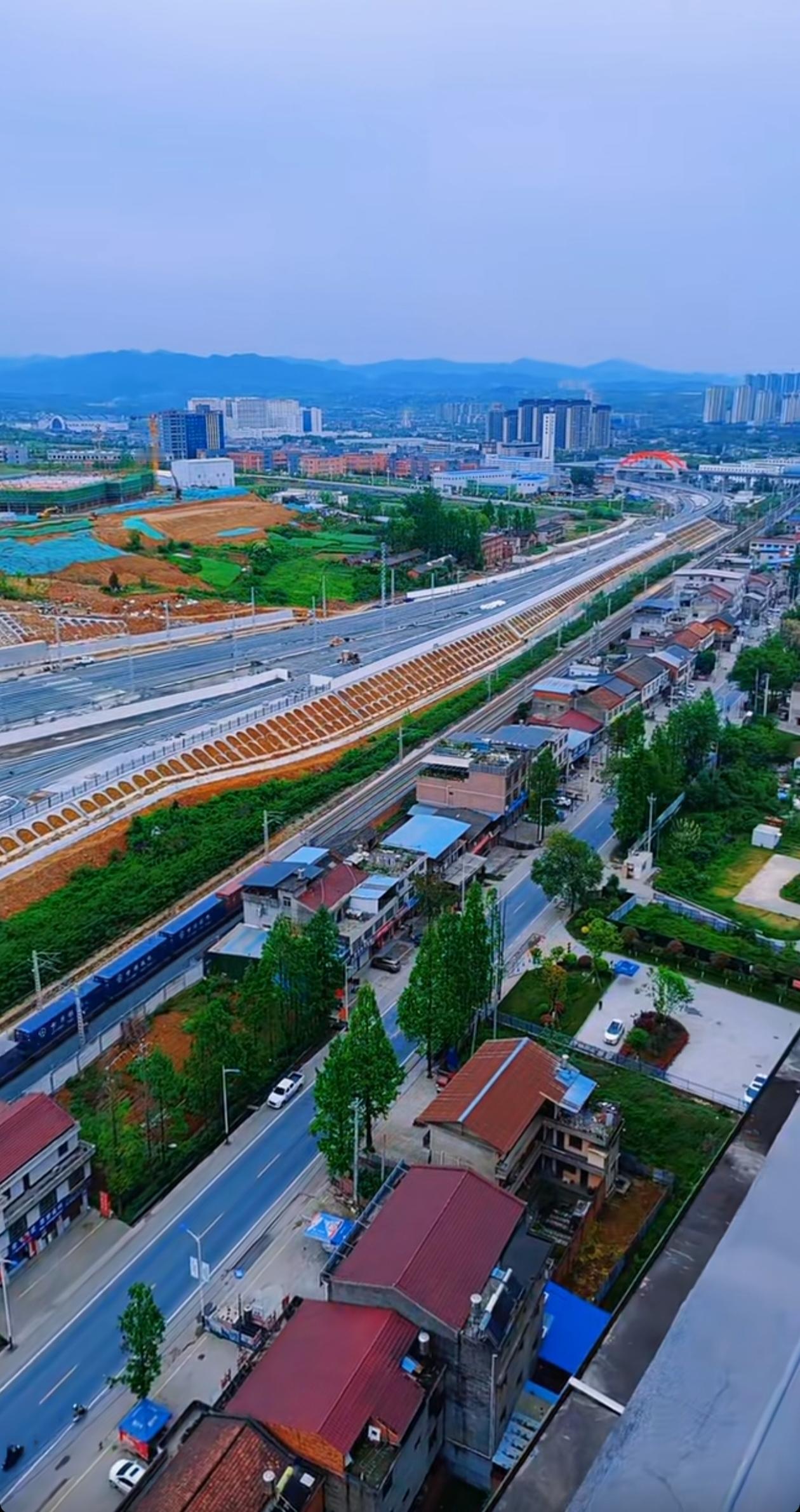 安康有一处国道、普铁、高铁并行的地方,这里是动车所,建设得十分美观。最前方是老316国道,与之仅一围挡之隔的是阳安铁路线,最里面新修的房屋和铁轨所在之处,便是安康高铁休息检测的地方,此地距离安康西站约2公里。你们是否好奇,为何房子不建在最里面呢?