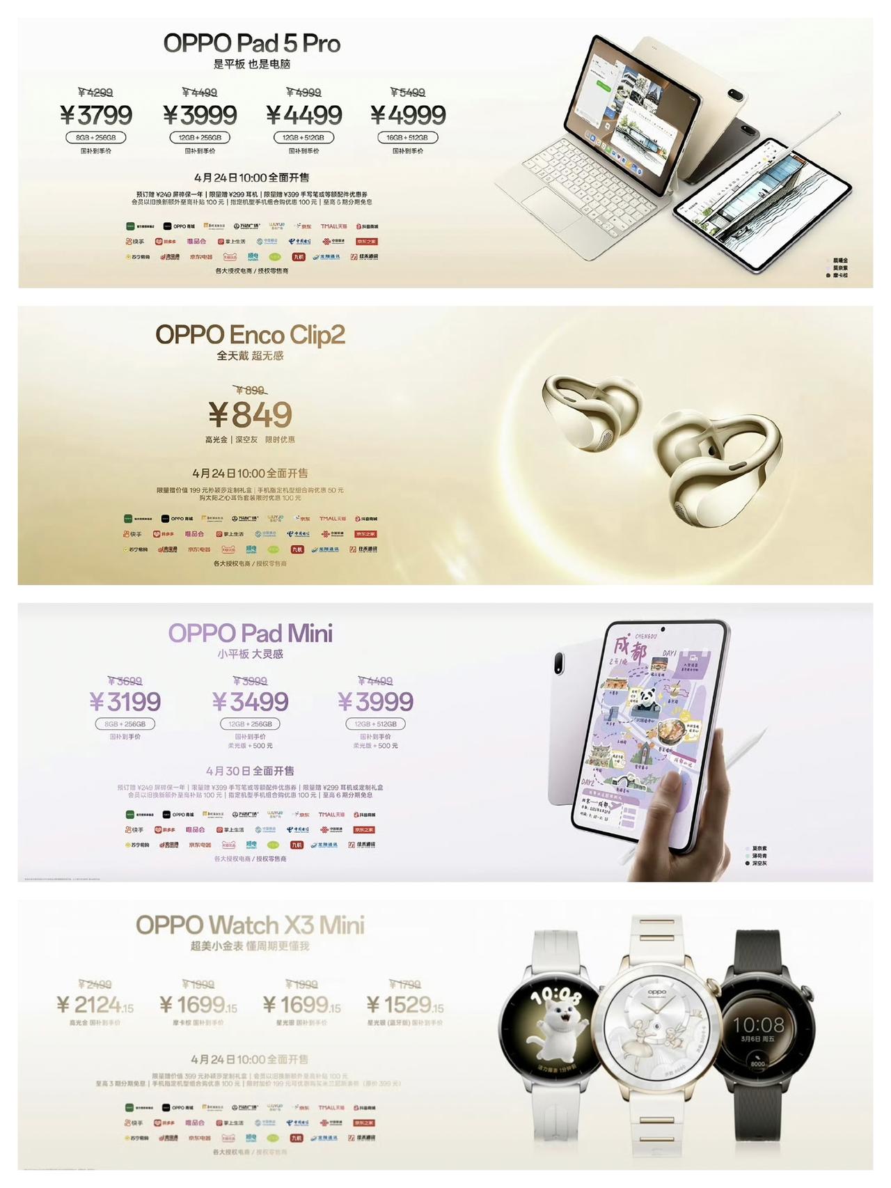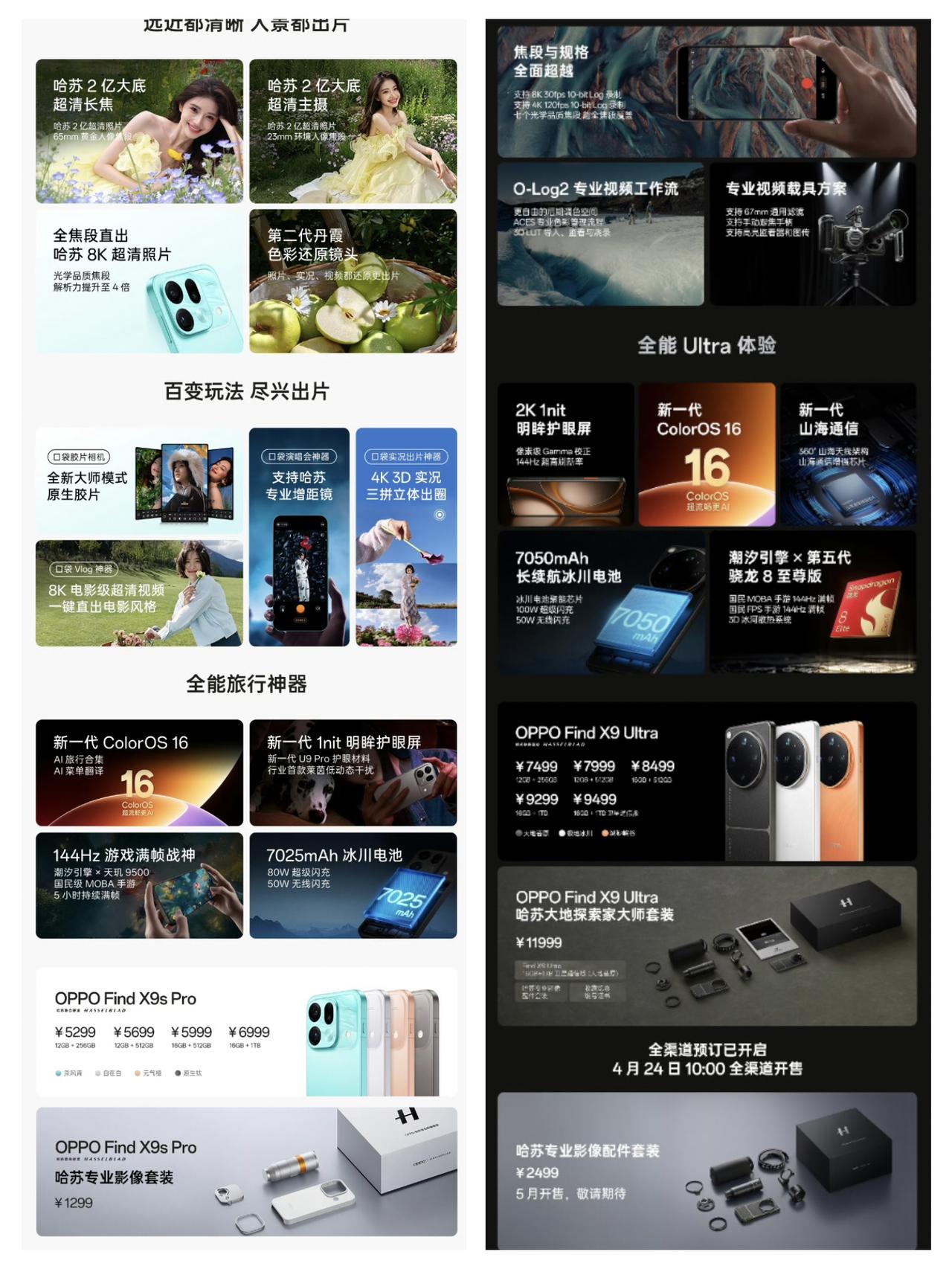 OPPO Find X9S Pro价格公布,5299元起 OPPO新品发布会结束了,除了手机还有小平板、耳机等多款产品,但重磅的还是OPPO Find X9S Pro和OPPO Find X9 Ultra。 其中,OPPO Find X9S Pro的 售价为5299元至6999元,哈苏专业影像套装是1299元,整机主打的是均衡和影像系统。两亿像素哈苏大底主摄、两亿像素哈苏长焦镜头,也有第二代丹霞色彩还原镜头。联发科天玑9500芯片、144Hz刷新率,7020毫安大电池,整体还不错。 OPPO Find X9 Ultra,售价7499原值9499元,这个价格不算便宜但它的堆料还是很猛的。基本上硬件都给了,芯片是第五代高通骁龙8至尊版,电池是7050毫安,屏幕是2K分辨率。基本上没啥硬件短板,适合追求极致影像的用户。 此外,耳机、小平板等产品价格都还行,尤其是OPPO Enco Clip2耳夹耳机,849元价格不错,主要体验是挺好的。