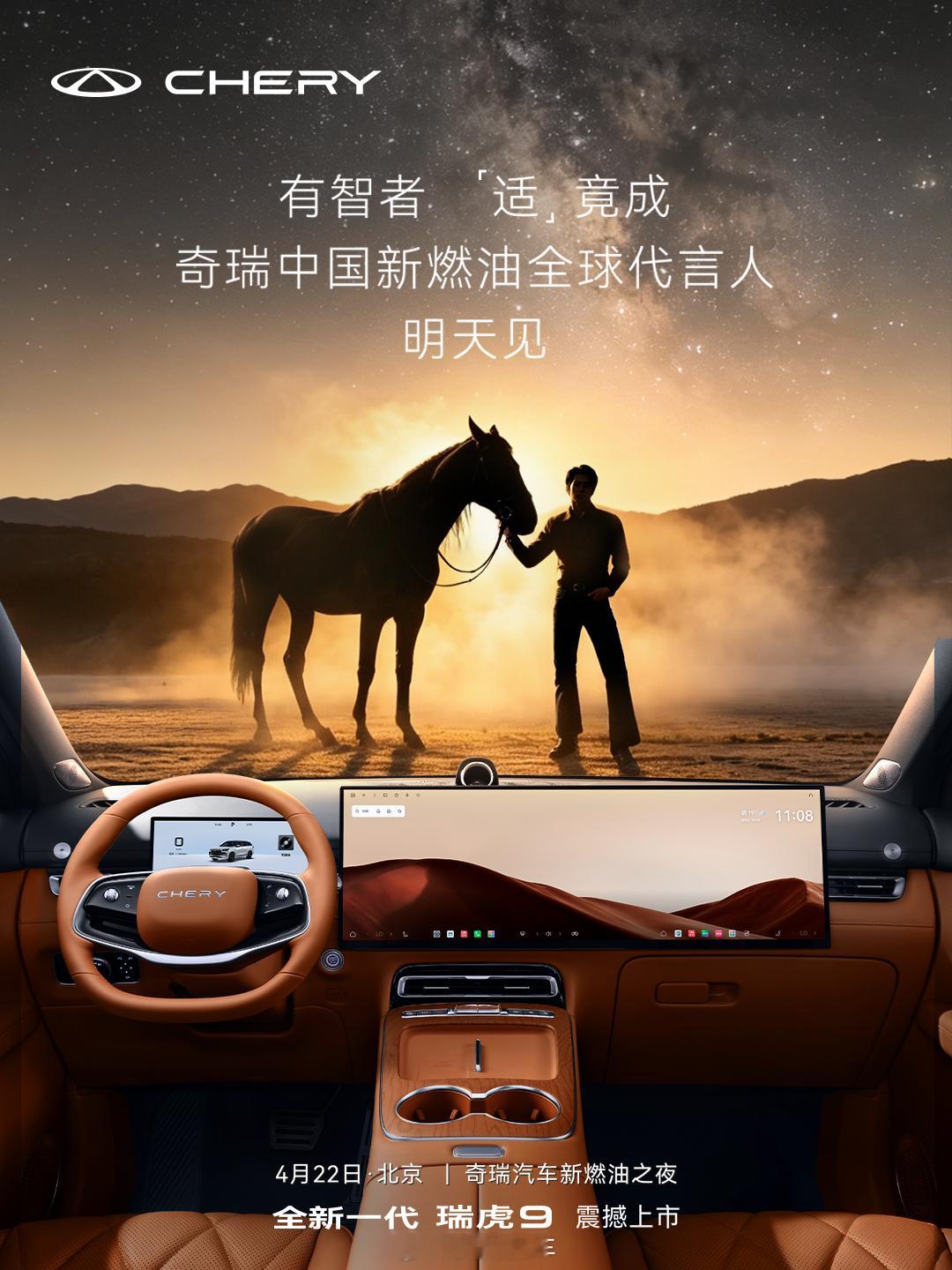奇瑞中国新燃油全球代言人即将揭晓有智者 「适」竟成奇瑞中国新燃油全球代言人4.22 北京.敬请期待奇瑞汽车新燃油之夜暨全新一代瑞虎9上市发布会 奇瑞汽车