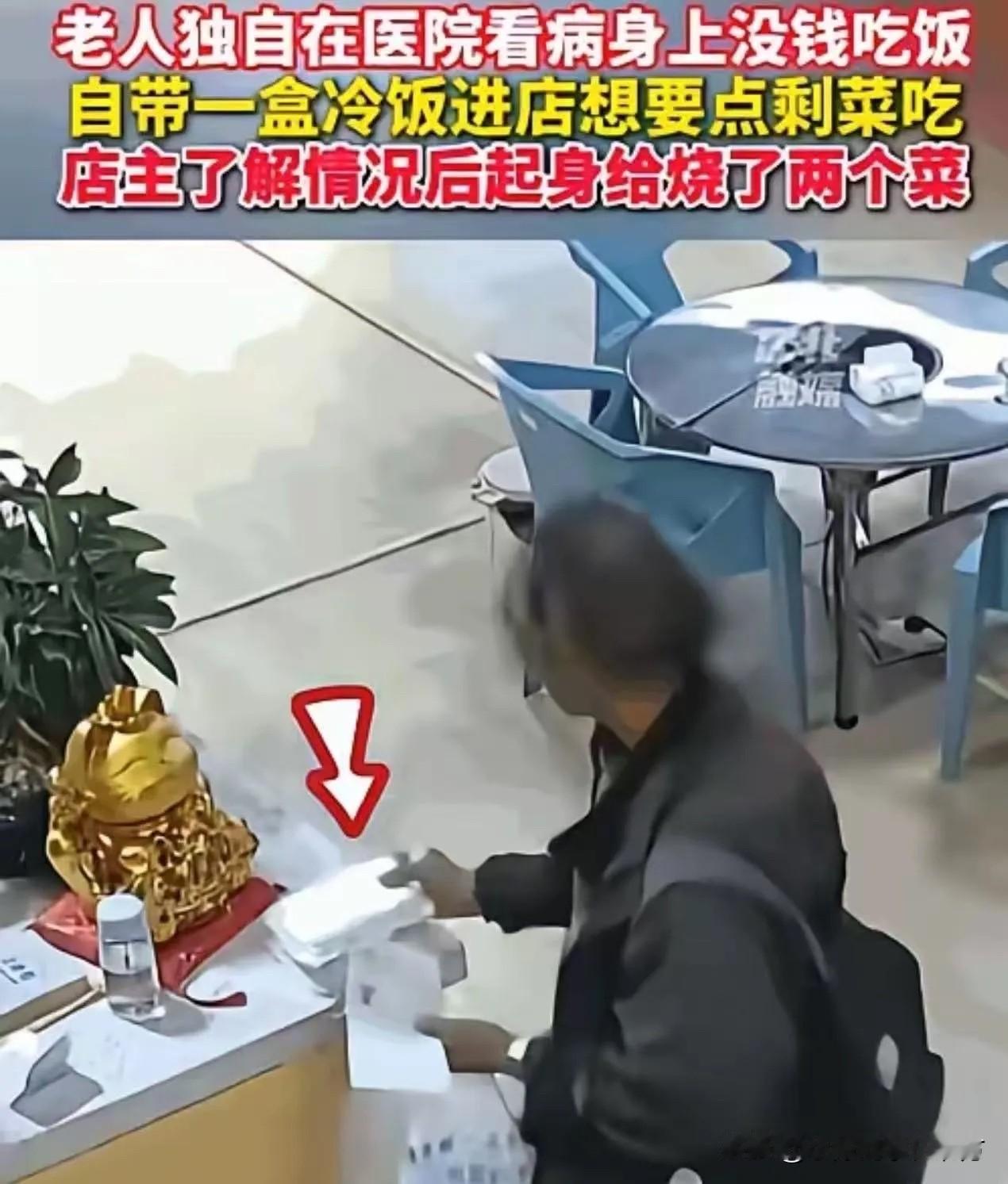 “店里有没有剩菜,给我一点就行!”云南昭通,一位独自看病的老人,花光了身上所有钱,揣着一盒冷饭走进餐馆,只想讨点剩菜充饥。店主得知实情后,二话不说转身下厨,免费给老人热了饭炒了两个热菜,还承诺:看病期间每天免费管两顿!这一幕,看哭了无数人。 事发在昭通市一家饭店内,当天晚上快9点,饭店里客人不多,牟先生正和妻子哄着孩子吃饭。 门帘一掀,一位头发花白、背有点驼的老人慢慢走了进来,他手里紧紧攥着一个旧饭盒,还有病历本、身份证,手腕上戴着医院的住院手环,一看就是刚从医院出来。 老人站在门口,半天不敢往里挪,眼神怯生生的,脸上满是窘迫,店员上前问他吃点啥,老人张了张嘴,声音又小又抖:“我不吃饭,就是想问问,店里有没有剩菜,给我一点就行,我自己带了饭。” 说着老人慢慢打开饭盒,里面是一盒干巴巴的冷米饭,一点菜都没有,他还赶紧掏出身份证和病历,还有一张年轻姑娘的身份证,反复念叨:“我不是骗人的,我真的没钱了,女儿得癌症走了,就我一个人,看病把钱都花光了。” 牟先生一听,心里咯噔一下,他接过老人的东西仔细看,病历上写着老人有慢性病,住院手环也清清楚楚。 再看老人憔悴的脸,牟先生鼻子一酸,想起15年前自己父亲在外地打工,身无分文饿了好几天,全靠好心人帮衬才挺过来。 他没半点犹豫,一把扶住老人:“大爹,您快坐!哪有什么剩菜,我给您热饭,再炒两个热菜,一分钱不要!” 说完,牟先生把老人扶到靠窗的位置,倒上一杯热水,转身就进了厨房,他先把老人的冷饭蒸得软软糯糯,接着开火倒油,麻利地炒了一盘回锅肉、一盘清炒时蔬,都是清淡好消化适合老人吃的家常菜,分量给得足足的。 没一会儿,两碗热气腾腾的菜,一碗热乎饭,端到了老人面前。老人看着眼前的饭菜,一下子愣住了,眼眶瞬间红了,握着筷子的手不停抖,嘴里反复说着:“谢谢你啊老板,你真是大好人,我没钱不能吃啊!” 牟先生按住老人的手,笑着说:“大爹,您放心吃,谁都有难处,不够我再给您做,以后看病没饭吃,就来我这里,我每天免费给您准备两顿饭!” 老人这才慢慢拿起筷子,一边吃一边抹眼泪,这顿简单的热饭热菜,不仅填饱了肚子,更暖透了他的心。 更让人鼻酸的是,老人怕弄脏店铺,还小声问能不能打包带走吃,牟良宽懂他的心思,赶紧拿来打包盒,把饭菜装得整整齐齐,还多给了一盒米饭。 周围几个晚走的顾客,把这一幕看在眼里,有人悄悄拿出手机拍了下来。视频发到网上,很快就火了,全网都在为这位暖心店主点赞。 有网友留言:“看着太心疼了,老人独自看病太不容易,店主真是良心老板!” 还有人说:“世上还是好人多,一口热饭守住了老人的尊严,太暖了!” 更有人感慨:“我们都有老的一天,善待老人就是善待自己,为牟老板点赞!” 其实善良从来都不是惊天动地的大事,而是这些藏在烟火气里的小举动,牟先生没有豪言壮语,只是用最朴实的行动给了困境中的老人一份温暖,老人没有过多奢求,一顿热饭,就足以让他感受到世间的善意。 这位平凡的店主,用最朴素的善良,书写了人间最温暖的真情,他没有因为老人没钱就冷眼相待,更没有嫌弃老人的请求,而是用包容和热心,守护了老人的尊严。 这世间最难得的从来都是这份发自内心的善良,不图回报,不问缘由,只是单纯地想帮一把身处困境的陌生人。 愿我们都能被这个世界温柔以待,也愿我们都能成为温柔待人的人,多一份理解,多一份善意,多一份对他人的体谅,让这些小小的温暖汇聚起来,照亮整个社会,为云南昭通这位暖心店主点赞。