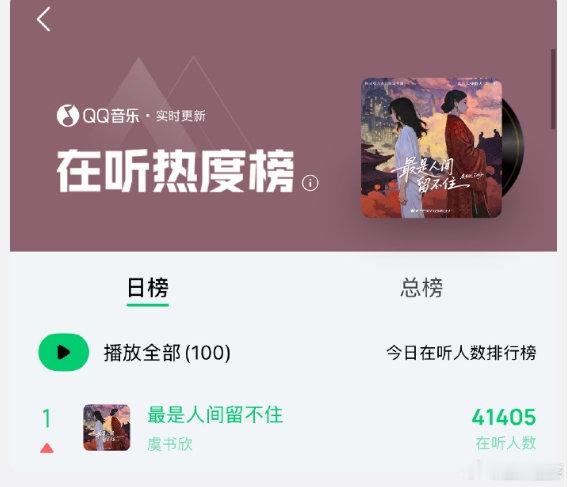 虞书欣新歌热度虞书欣新歌空降成绩虞书欣新歌 《最是人间留不住》空降成绩🈶!!直接登顶日榜第一,这热度不愧是歌手虞书欣,春日限定单曲已上线,🎧 循环播放模式开启 ➡️