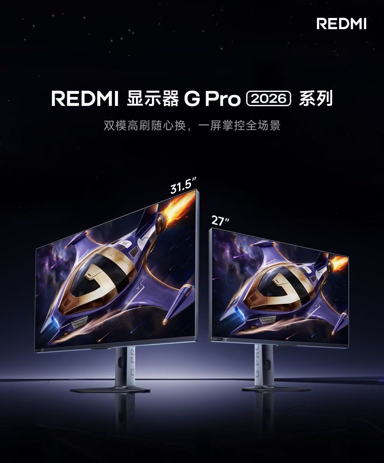 REDMI显示器REDMI显示器GPro3A玩家终极答案 G Pro 2026系列,震撼来袭!无论是驰骋 3A 大作、激战 FPS 赛场,还是观影追剧,皆可呈现高清质感与丝滑画面随时随地解锁专业视觉主场!首发更优惠,到手价2699起!