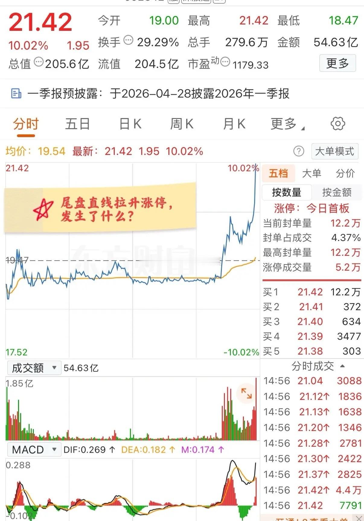 发生了什么?索具尾盘直线拉升涨停并创出历史新高!今天索具一度低开2个多点,正式开盘交易后先是下杀了一波,然后就被迅速拉起并翻红,可惜此后就没有什么上涨的动力了,然后就一直在浅水区运行,这种状态一直持续到了下午2点24分!此后索具突然就被暴力拉了起来,大概3波拉升后已经转跌为涨近5%!可惜索具没能一鼓作气,此后再次回落!本以为索具今天也就这样了,但没想到临近尾盘索具再次发力,一根直线就冲上了涨停,正好卡在了集合竞价前,同时也刷新了历史新高!莫不是商业航天或者海上回收又有了什么利好?要不然索具怎么会有这种拉升!