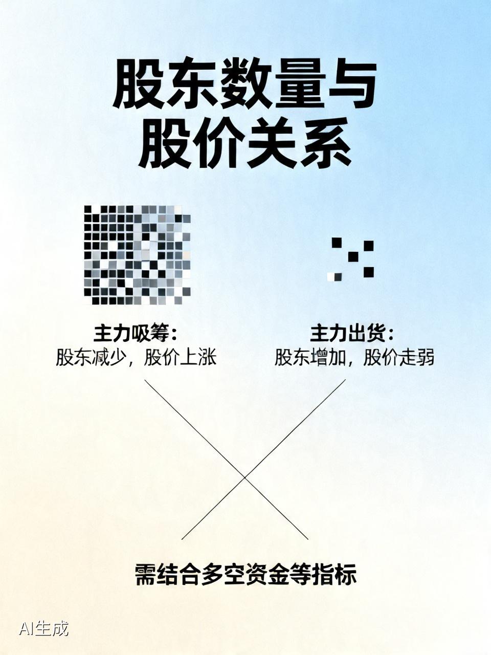 股东数量与股价有什么关系? 股东数量和股价关系挺微妙。当主力资金进场吸筹,会让股东人数减少,因为主力筹码增加,散户筹码减少,主力控盘度提升。这种情况下,主力拉升股价难度小,股价上涨幅度可能更大。 相反,主力出货时,大量筹码被散户接盘,股东人数上升,筹码分散,股票可能失去主力支撑,走势会变弱。 不过,不能只看股东人数判断股价。年报和季报数据有滞后性,实际操作得结合多空资金、筹码分布、量能等指标综合分析,这样才能更准确把握股票走势。
