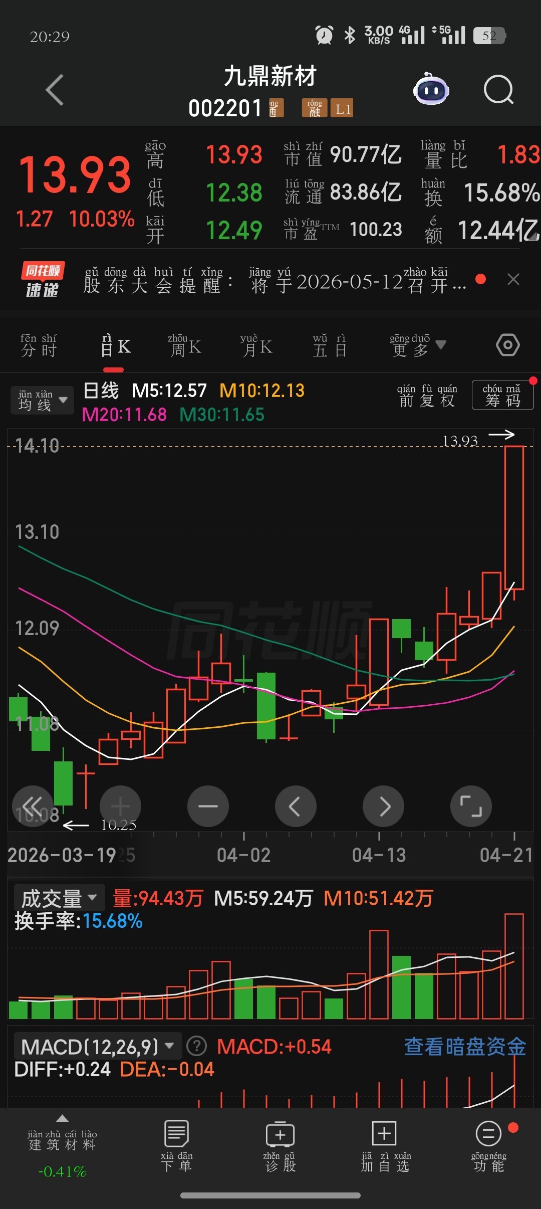明天热门,加入自选,有望突破口值得收藏九鼎新材华电辽能巨力索具