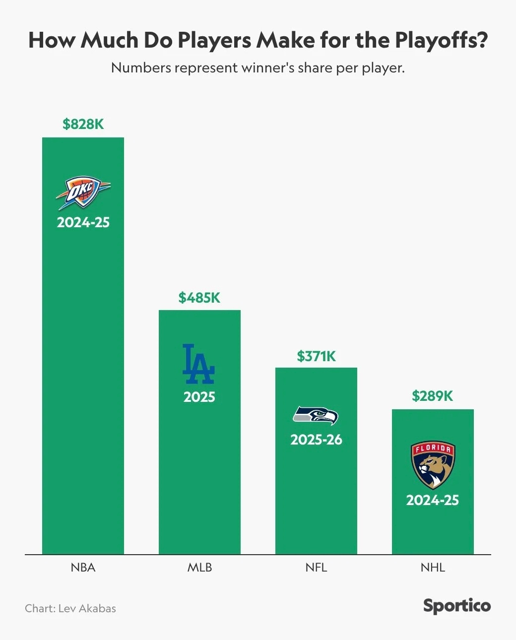 NBA球员在季后赛中会获得额外报酬,他们将瓜分联盟3600万美元的季后赛奖金池。如果俄克拉荷马城雷霆队赢得2026年总冠军,他们将有资格获得最大的一笔奖金——每名球员约85.4万美元。对顶薪球员来说这笔钱不算什么,但对部分球员而言,这是一笔可观的额外收入。