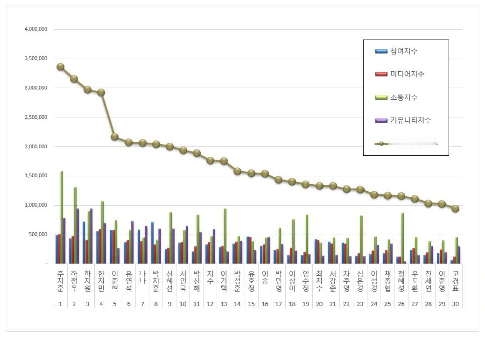 21-30名:徐康俊、车珠英、沈恩敬、李圣经、蔡钟协、郑惠成、禹棹奂、陈世妍、李濬荣、高庚杓