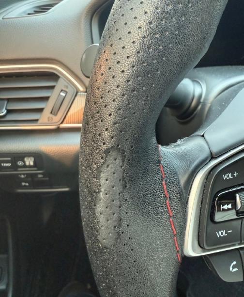 之前车子上装了一个方向盘套,但是使用了也没多久就取下来了,为什么呢?因为我发现冬天的方向盘套是冰手的,而夏天比较烫,摸起来手感也不好,我手心容易出汗,比较容易打滑。我认为这是属于华而不实的东西。当然了,方向盘上缝个皮,皮不要薄,我觉得还是可以的。【来自懂车帝车友圈】