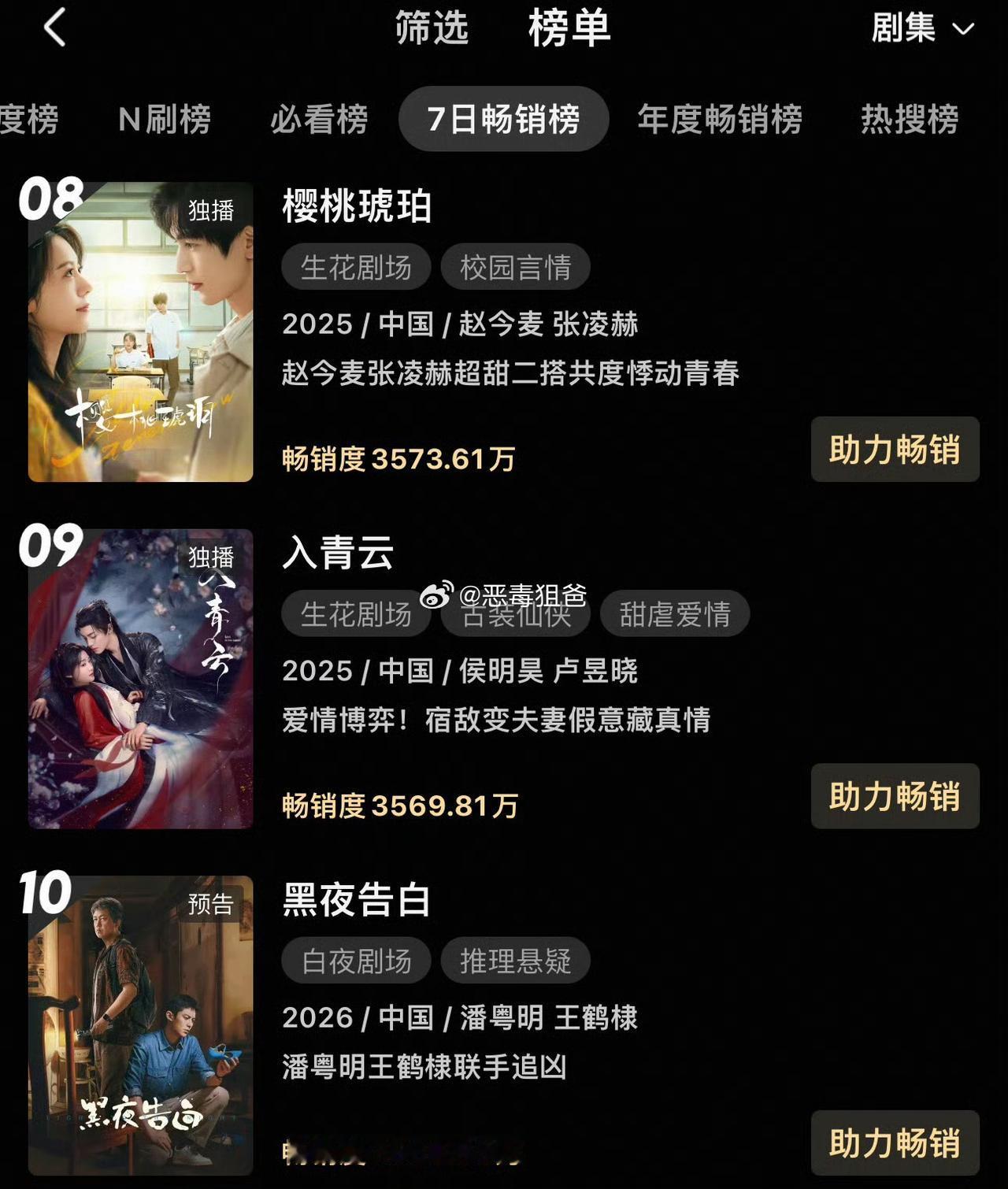 《黑夜告白》未播先火。 定档5小时进拉新周榜,9小时升至第十