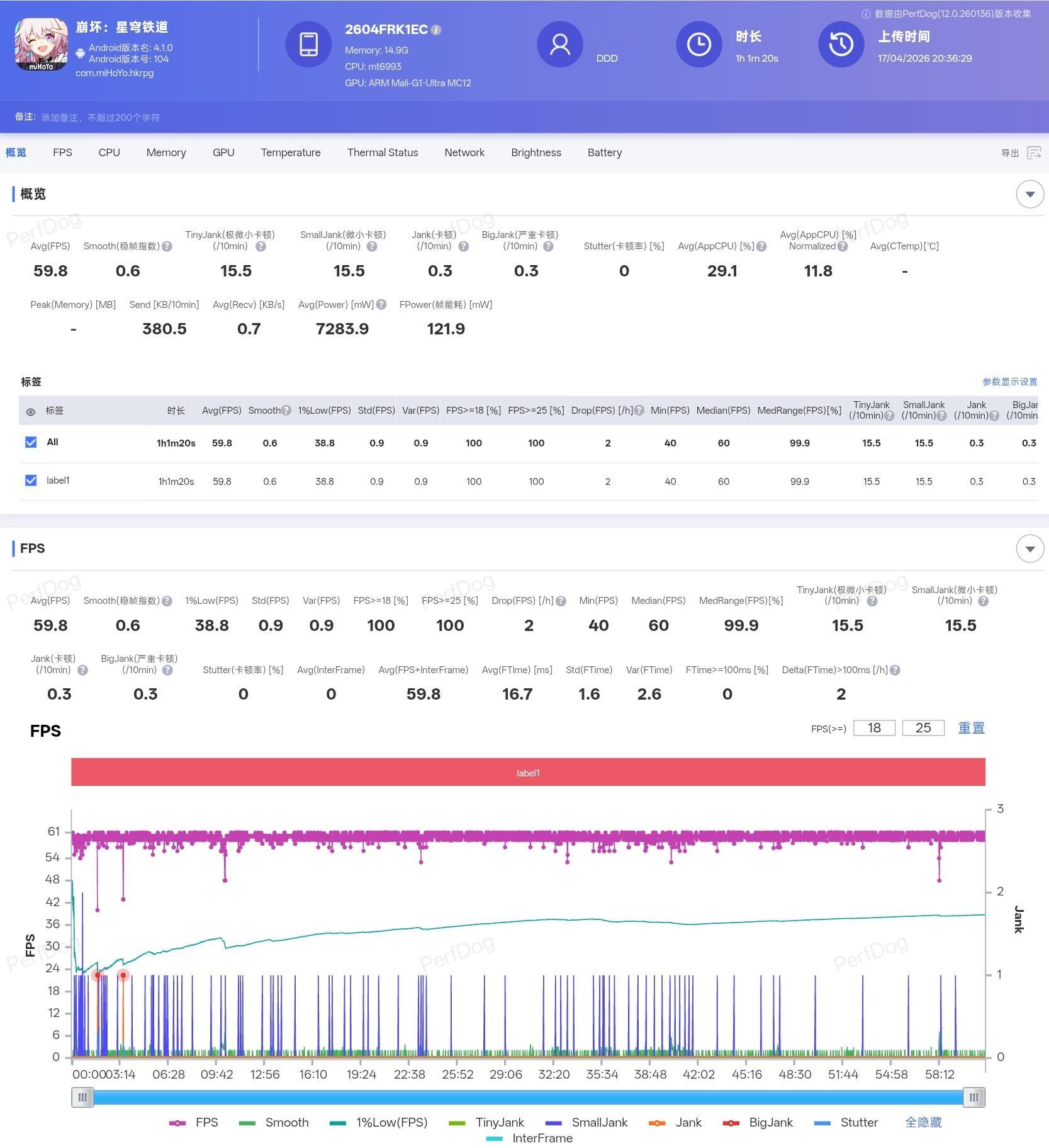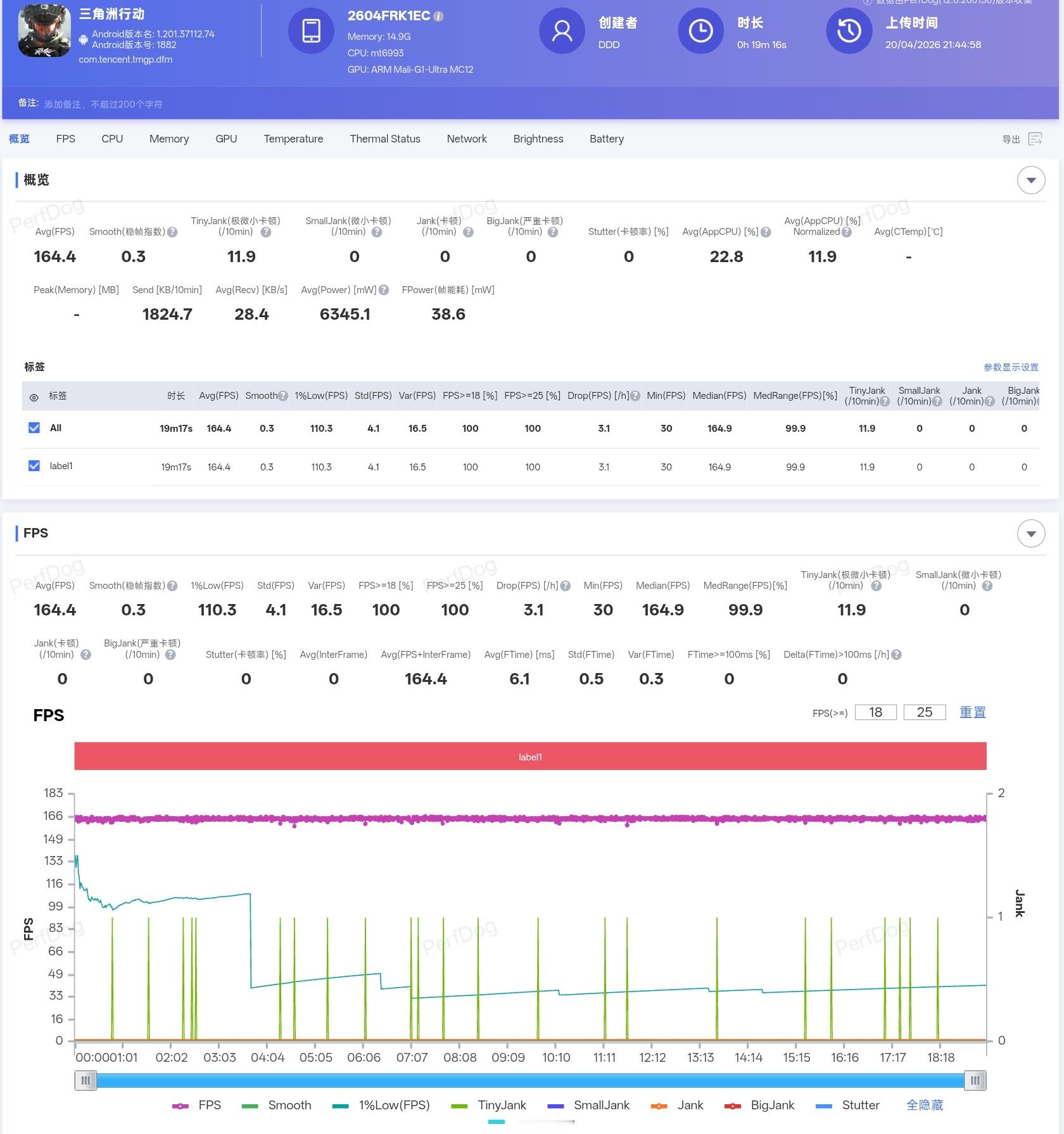 —《原神》全高画质30分钟,D2芯片3倍插帧下实现平均165FPS,平均功耗6.4W;—《星铁-黄金的时刻》全高画质60分钟长测,原生帧率平均59.8FPS,平均功耗7.3W;—《三角洲》&《和平精英》原生帧率都能稳定在164FPS+,搭配全新电竞触控,针对性降低触控响应时长,对打枪类手游的体验提升很大。