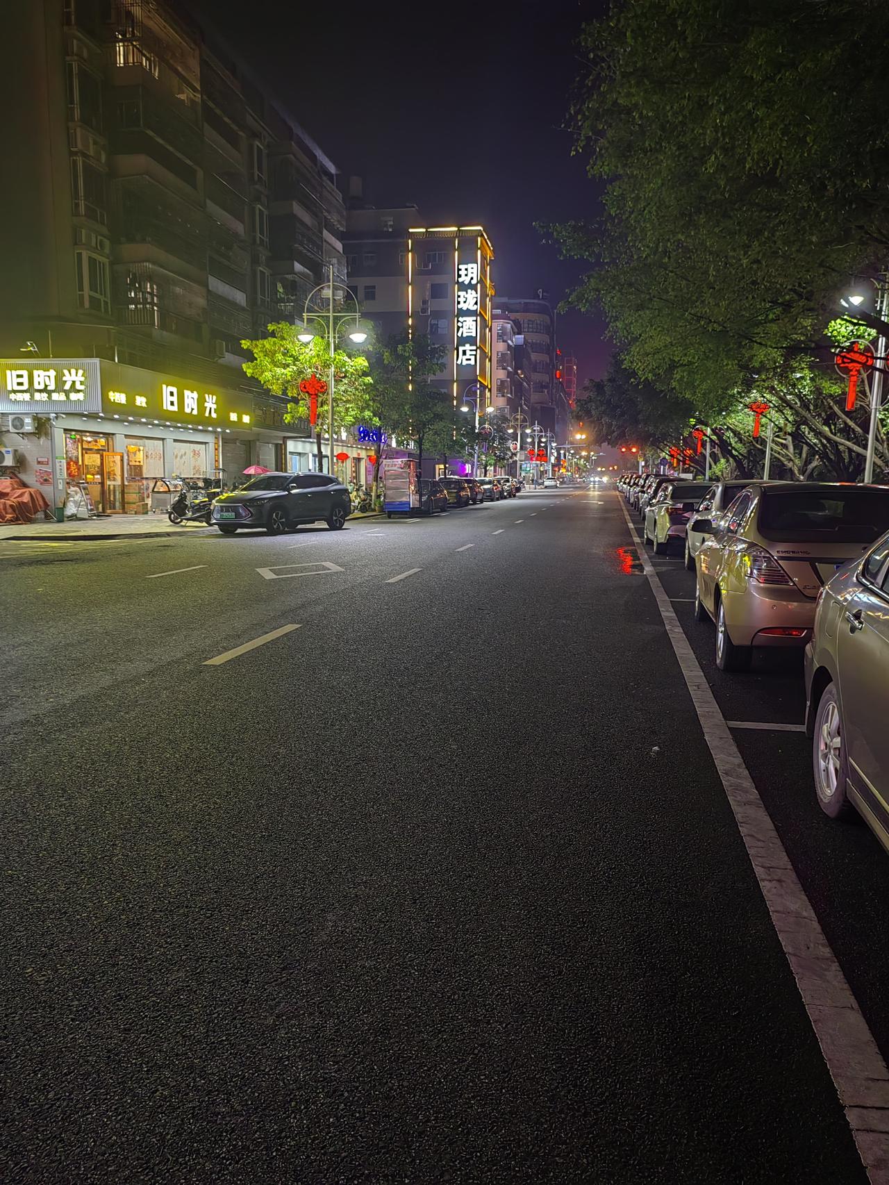 夜幕下的繁华街景,灯火阑珊,车流不息。