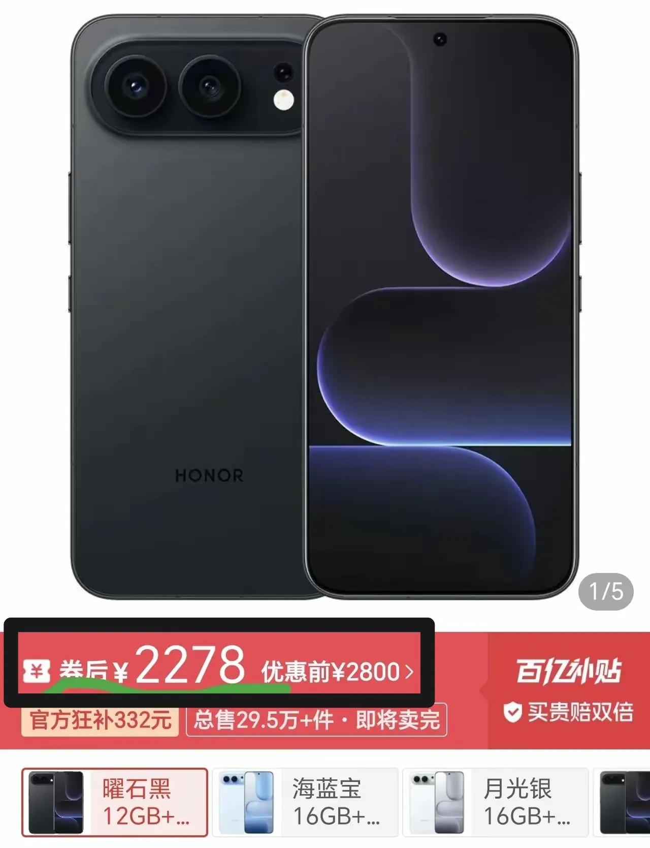 拼夕夕还是太猛了!我今天真的被荣耀500的价格惊到了,越看越觉得离谱[我想静静] 明明官方12+256GB版本首发就定了2699元,后来还涨到了2999元,结果现在某平台叠加国补和各种券之后,居然直接干到了2278元!整整便宜了七百多块,这降价幅度真的太夸张了。 我真的很好奇这个平台到底是怎么做到的?就算是成本价拿货,也不可能低到这个程度吧?这么卷价格,同价位的其他友商真的没法卖了。 要知道荣耀500可不是什么低配机啊:8000mAh的青海湖大电池,续航能顶两天;2亿像素的大底主摄,拍照效果在同价位没对手;还有骁龙8s Gen4旗舰芯片,玩游戏、多任务切换都丝滑不卡顿。除此之外,它还带IP68+IP69K双防水、1.5K绿洲护眼屏和80W快充,这些配置加在一起,卖2278元,性价比真的直接拉满了。