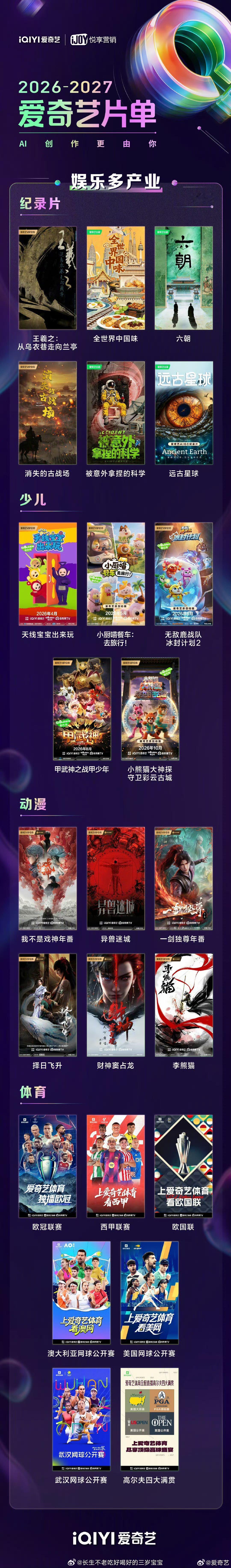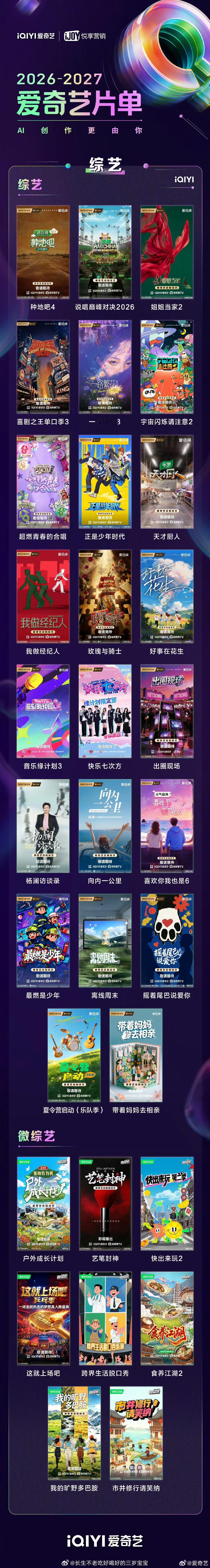 2026爱奇艺世界大会桃厂这次真的放大招了!2026-2027片单直接覆盖综艺、剧集、电影全赛道,感觉未来两年的快乐都被🥝承包了!短剧和娱乐内容也有新惊喜,坐等开播,我的电子榨菜库又要爆仓了!2026爱奇艺造梦片单
