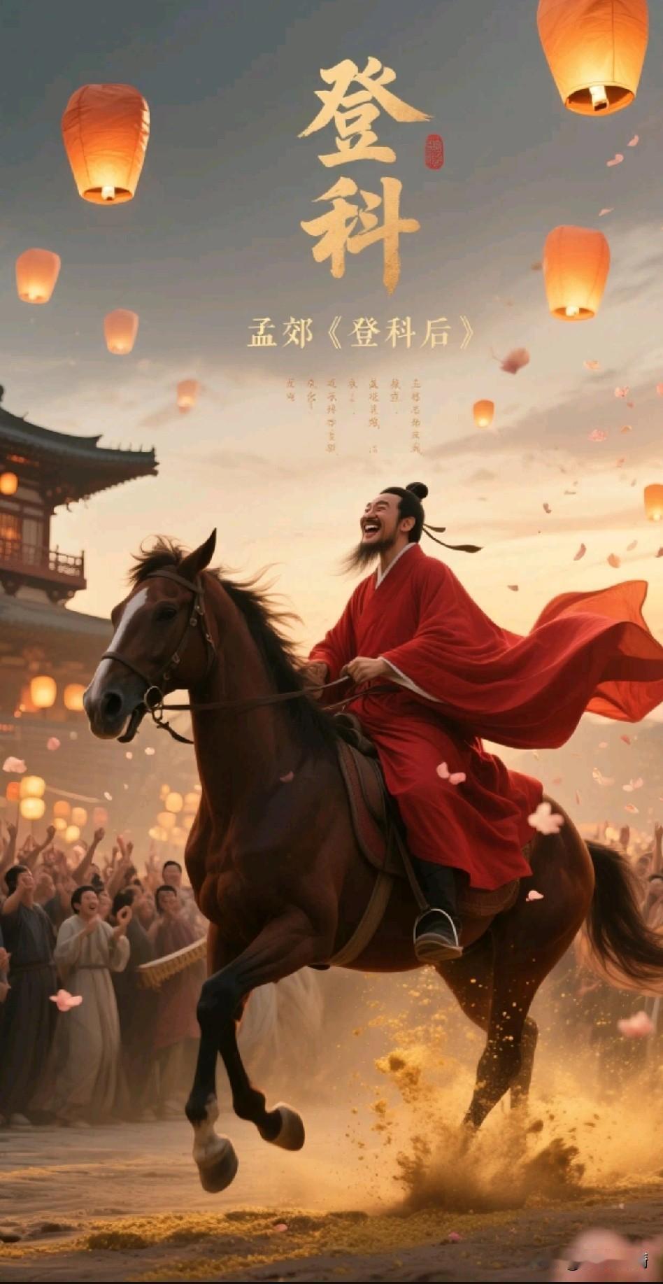 《穷途一放歌——孟郊《登科后》的至狂与至痛》 四十六载,寒窗孤影,长安花落,马蹄声碎和失意人,得意客,红尘客,白头翁,少年郎:半生潦倒压作纸上一声长啸,一朝释怀写尽人间千古狂喜,春风过处皆是泪痕晒干之路及穷酸骨,少年心,落第客,登科人,长安花,洛阳尘。 半世蹉跎半世哀,一朝金榜一朝开。 春风不度穷酸骨,偏送马蹄踏花来。 长安日暖千门柳,不若寒灯夜半苔。 莫笑狂生放荡语,字字皆是血凝裁。 (开篇) 世人皆道孟郊之诗寒瘦枯槁,如“食荠肠亦苦,强歌声无欢”,读之令人蹙眉。然有一诗,通篇不见一丝苦色,但见少年意气扑面而来,狂态淋漓,如醉如痴。这便是那首写于四十六岁登科之后的《登科后》。 四十六岁,于今人而言,或已至人生半途,于古人更是知天命之门槛。一个被命运反复碾压了半辈子的穷书生,一朝翻身,竟能写出“春风得意马蹄疾,一日看尽长安花”这般畅快淋漓之语。细思之,这狂放背后,藏着多少不足为外人道的辛酸与执念? 一、龌龊半生:穷骨熬霜雪 孟郊出身寒微,父早亡,依母而生。少时隐居嵩山,并非慕道求仙,实因家贫无以自给。彼时科举之路,非但考才学,更考家底——赶考盘缠、京师食宿、交游应酬,无一不需银钱。而他孟郊,连温饱尚且勉强,更遑论打点关系。 史载其屡试不第,困守长安多年。冬日无炭,曾“卧冰求鲤”般以诗换米;夏日无帐,任蚊蚋叮咬而苦读。旁人讥他“穷酸”,亲友避他如避瘟。那些年,他尝尽了“世情看冷暖,人面逐高低”的滋味。诗里写“愁人独夜伤”,写“病骨可剸物,酸呻亦成文”,字字泣血。 最可叹者,连妻儿亦随他受尽白眼。其《秋怀》有云:“老骨惧秋月,秋月刀剑棱。”非是月如刀,是人心似刀耳。这般磋磨之下,少年时的棱角早被磨尽,却磨出了一根不甘的骨刺,深扎心底,日夜作痛。 二、金榜题名:狂歌当哭时 放榜那日,他挤在人群中,颤抖着手指寻自己的名字。当“孟郊”二字赫然在目时,据说他当场失声痛哭。那不是喜极而泣,是积压了三十年的郁气一朝喷薄——所有的委屈、落魄、嘲讽、白眼,都在这一刻化作了决堤的洪水。 他没有像其他士子那般矜持作态,说什么“偶然擢第”的谦辞。他偏要狂,偏要放,偏要把半生压抑尽数倾泻。于是提笔写下: 昔日龌龊不足夸,今朝放荡思无涯。 春风得意马蹄疾,一日看尽长安花。 昔日龌龊——四字何其沉痛。“龌龊”不是今日所谓肮脏,而是局促、窘迫、不得舒展之意。那些年的穷困潦倒,那些年的仰人鼻息,如今终于可以“不足夸”了。不是忘记,是不必再提。 今朝放荡——“放荡”二字用得极险极妙。非是行为放荡,而是心神驰骋,无拘无束,如困兽出笼,如枯木逢春。压抑了半辈子的灵魂,终于可以肆意飞扬。 后两句更是千古绝唱。春风得意,马蹄轻疾,一日之间要看尽长安繁花。这“一日看尽”四字,细品之下,其实藏着另一种滋味——他太急了,急得像是怕这得意稍纵即逝,急得要把半生错过的春光一日补回。这种急切,恰是苦难留下的烙印。 三、春风背后:得意原是失意人 世人读此诗,多读出“畅快”二字。然若细究孟郊生平,便会读出另一层滋味来。 四十六岁登科,按唐制,只能授一小官。果然,他后来只得了溧阳县尉,位卑俸薄,终日对山水吟诗,公务荒废,被上司弹劾。晚年更是贫病交加,最终在暴卒于赴任途中。他的“春风得意”,不过人生中短暂一瞬罢了。 但正因这短暂,这诗才愈发珍贵。那是命运在漫长黑暗里撕开的一道口子,让他得以窥见天光。他知道这光转瞬即逝,所以拼命奔跑,拼命去看,拼命去记。所谓“一日看尽”,并非贪心,而是悲凉——因为知道明日或许又是风雨。 这让我想起后世范进中举,狂喜至疯。世人笑范进,却不知那狂笑里有多少读书人的血泪。孟郊没有疯,他把这狂喜凝成了二十八个字,字字都是苦根上结出的甜果,带着一种近乎残酷的壮美。 结语: 人生天地间,谁不曾有过“昔日龌龊”之时?谁不曾盼过“春风得意”之日?孟郊这首诗能穿越千年而依然动人,正因它写出了每一个逆风翻盘者心中最真实的狂喜——那狂喜不是轻浮,而是沉重得太久之后的释放;那得意不是张扬,而是卑微得太久之后的昂首。 读此诗,当知其狂中有痛,乐中有悲。然正因如此,它才不是一碗廉价的鸡汤,而是一声从命运夹缝里挤出来的长啸,告诉每一个仍在困顿中咬牙前行的人:天总会亮的,而你,值得那场春风。