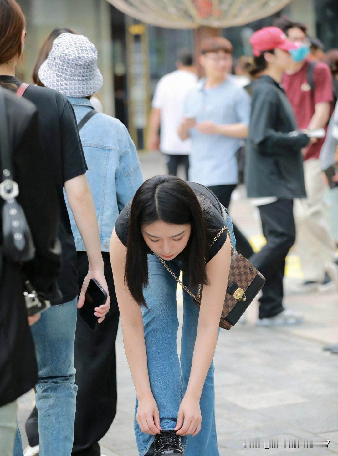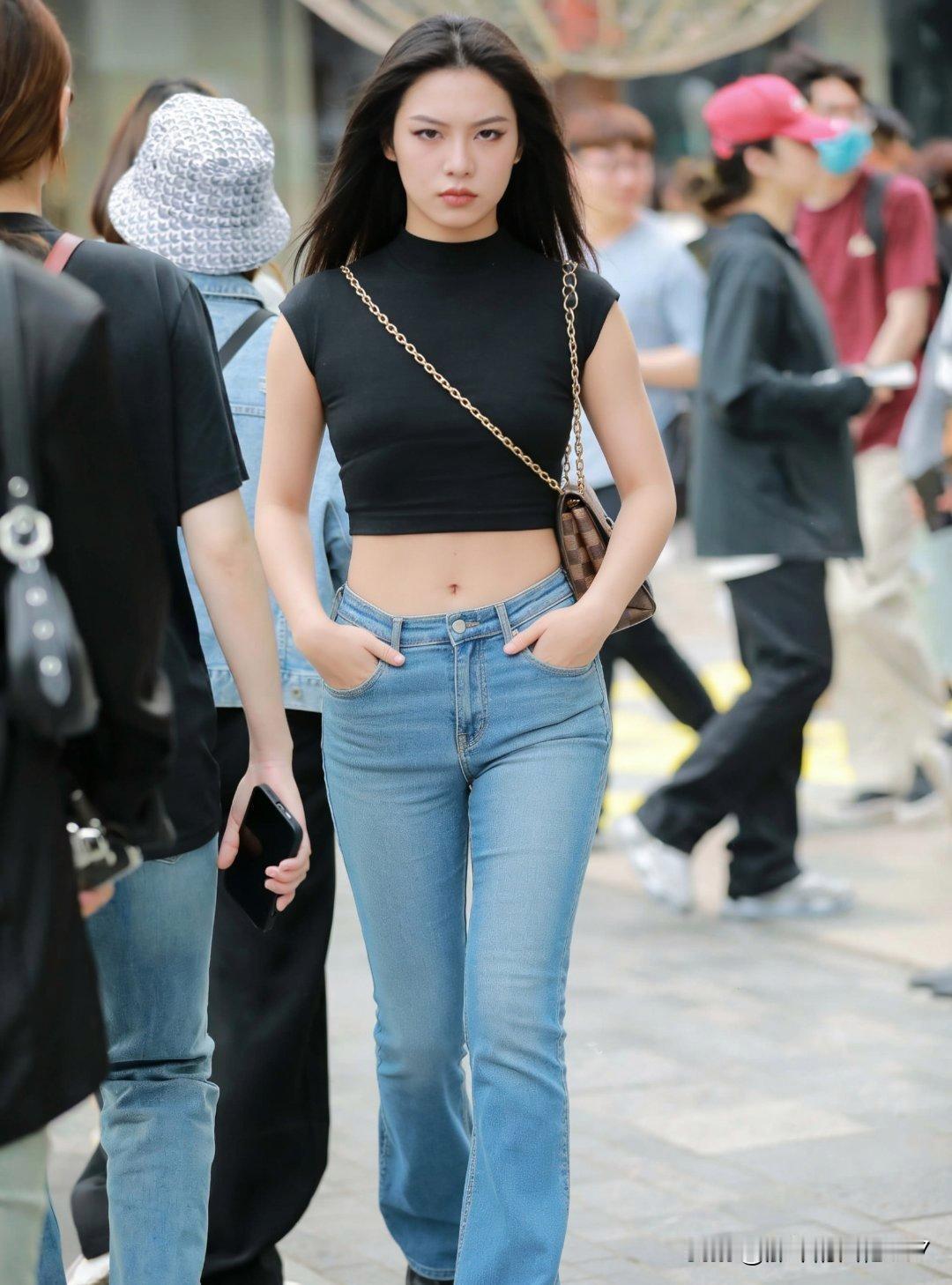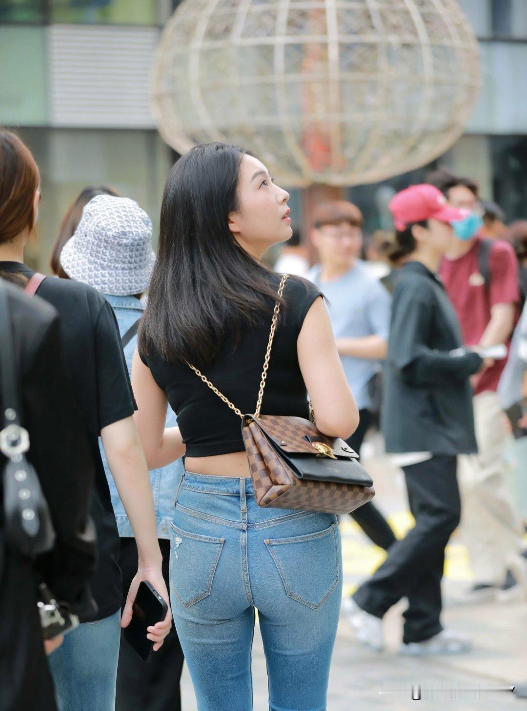 街拍时尚里,牛仔裤搭配小包简直绝了!春天穿牛仔裤,别只知道搭运动鞋啦,看看上海、杭州的街拍,时髦精们可有新玩法。 比如用牛仔裤搭配乐福鞋,休闲与正式碰撞,竟意外好看。还有米白抽带T恤 + 小脚牛仔裤 + 白色软包的搭配,从巴黎街拍到上海地铁都很常见。现在的白T有抽带等细节,能自己调节腰线和体感;软蓝牛仔裤色调像洗过几十次,腿线顺比例好;白包流行软塌塌的款式,挎着舒服。这一套在哪都能穿,披个轻薄开衫或绕条丝巾,还能秒变通勤风,真是衣橱保底款! 分享甜美小姐姐随手拍