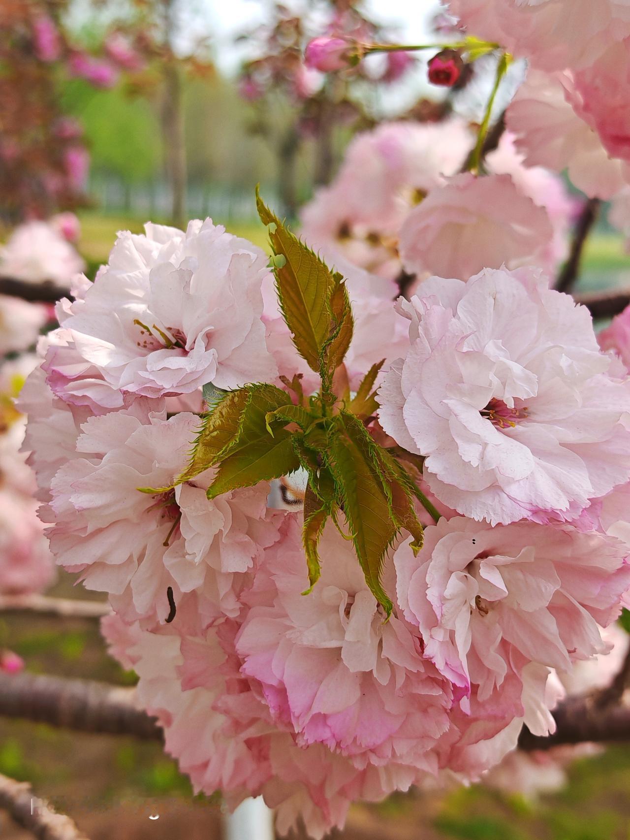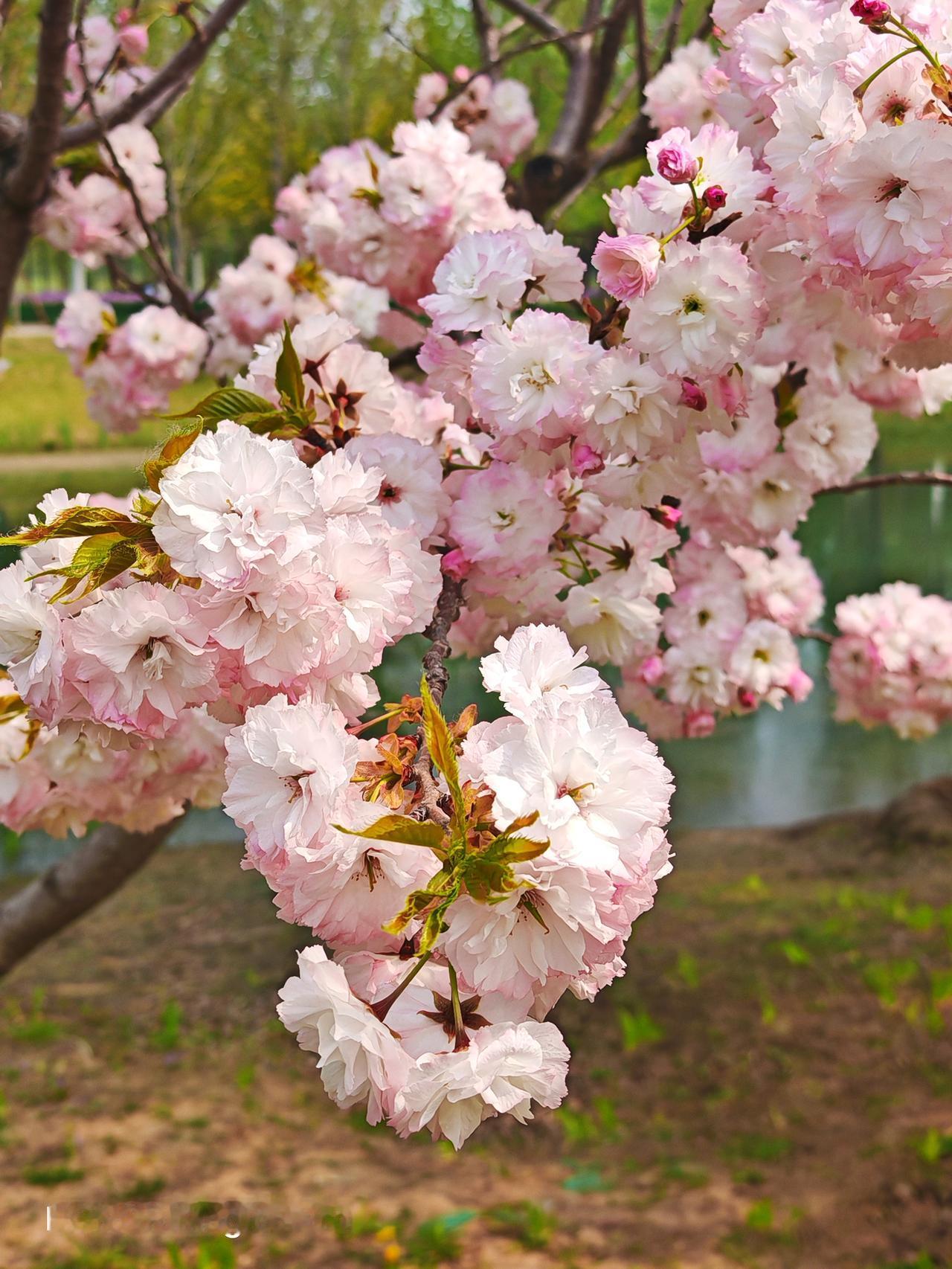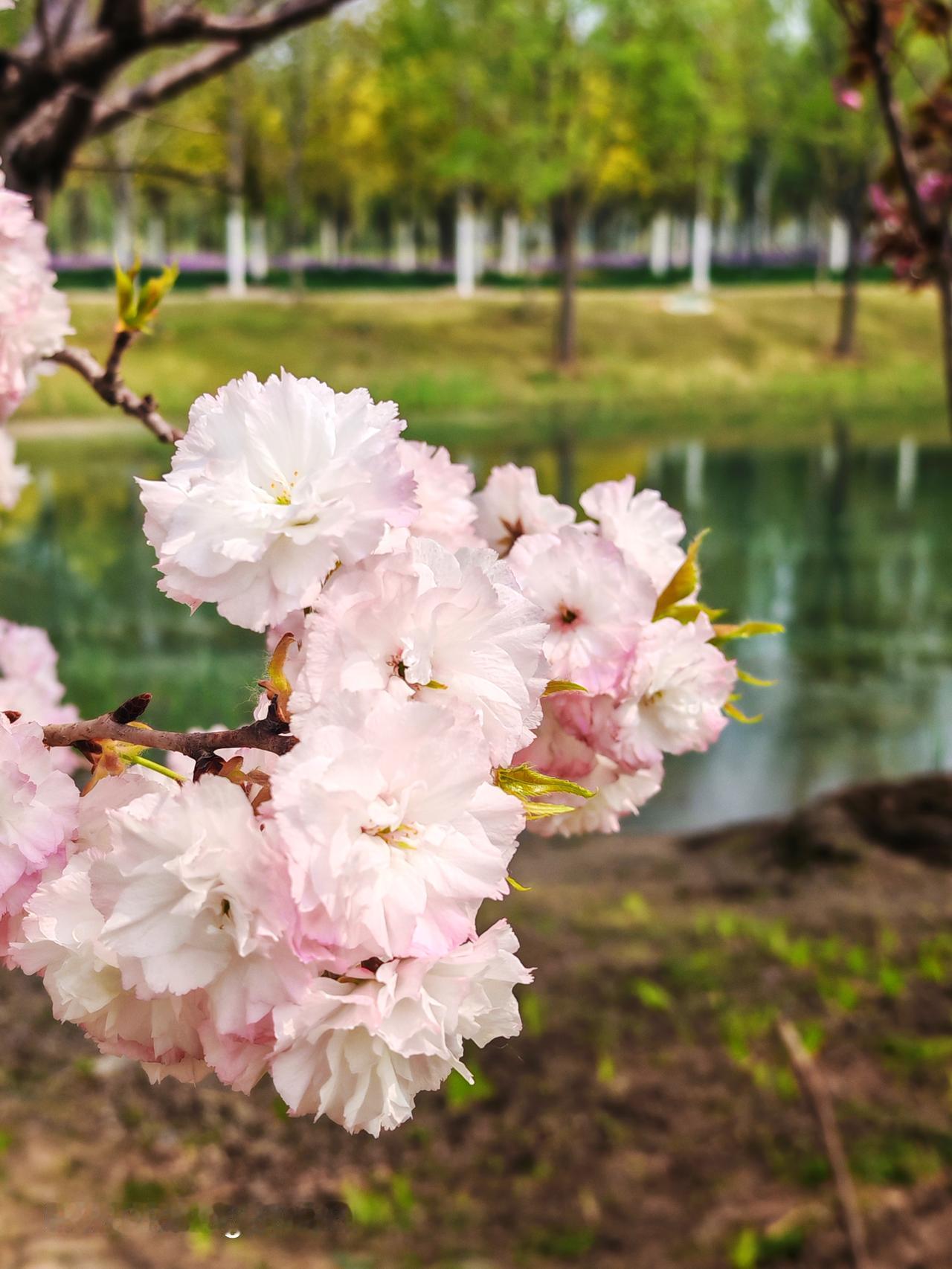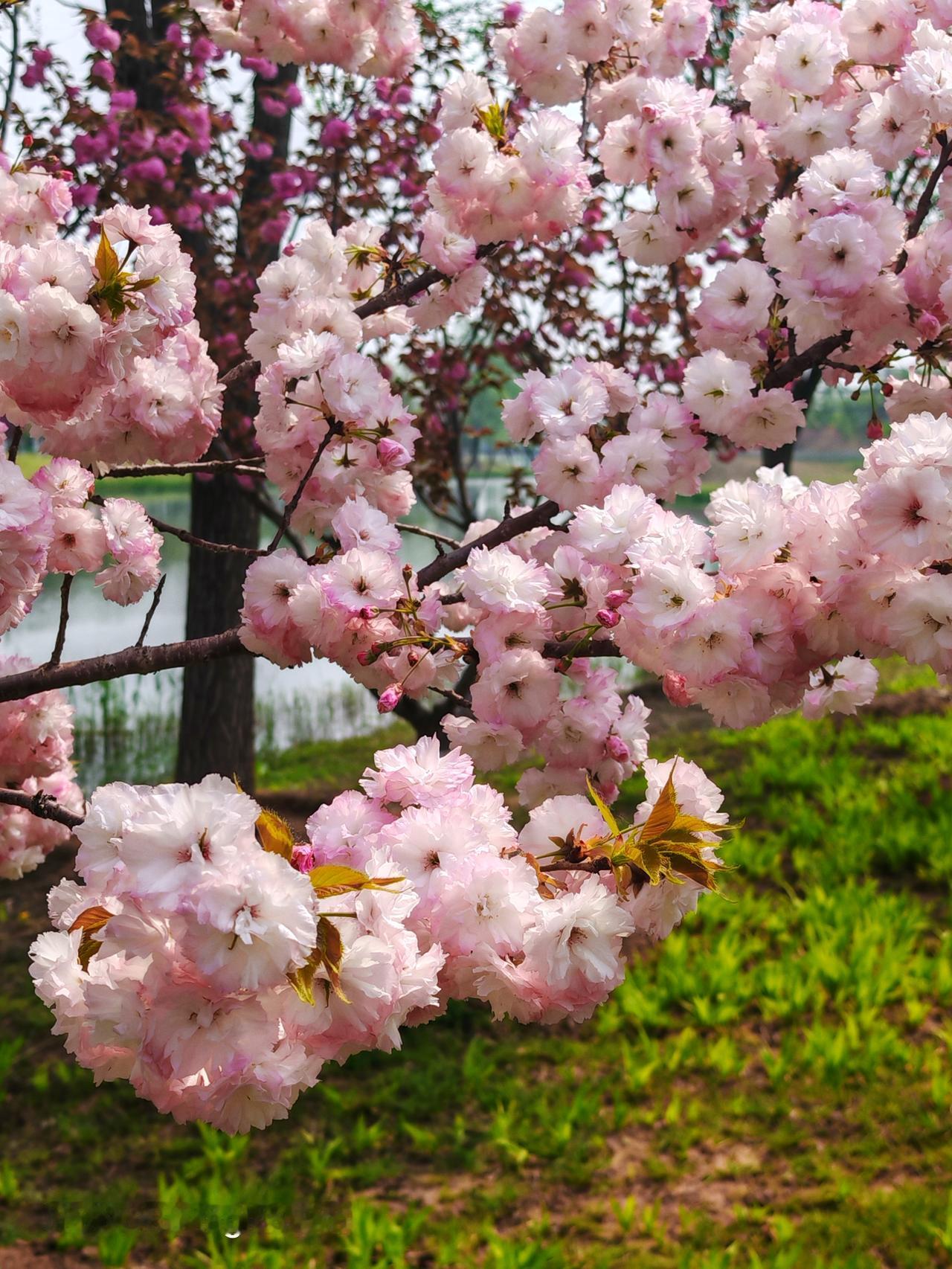 运河故道的景色简直绝了,尤其是那榆叶梅,美得让人陶醉。 漫步在运河故道边,榆叶梅肆意绽放。它们粉粉嫩嫩的,像少女害羞的脸颊。有的花朵完全展开,露出金黄的花蕊;有的还是花骨朵,小巧玲珑,惹人怜爱。风一吹,花瓣轻轻飘落,仿佛下起了一场粉色的花雨。在运河波光粼粼的水面映衬下,榆叶梅更添了几分灵动。这画面就像一幅绝美的画卷,让人忍不住驻足欣赏,感受这大自然带来的美好。