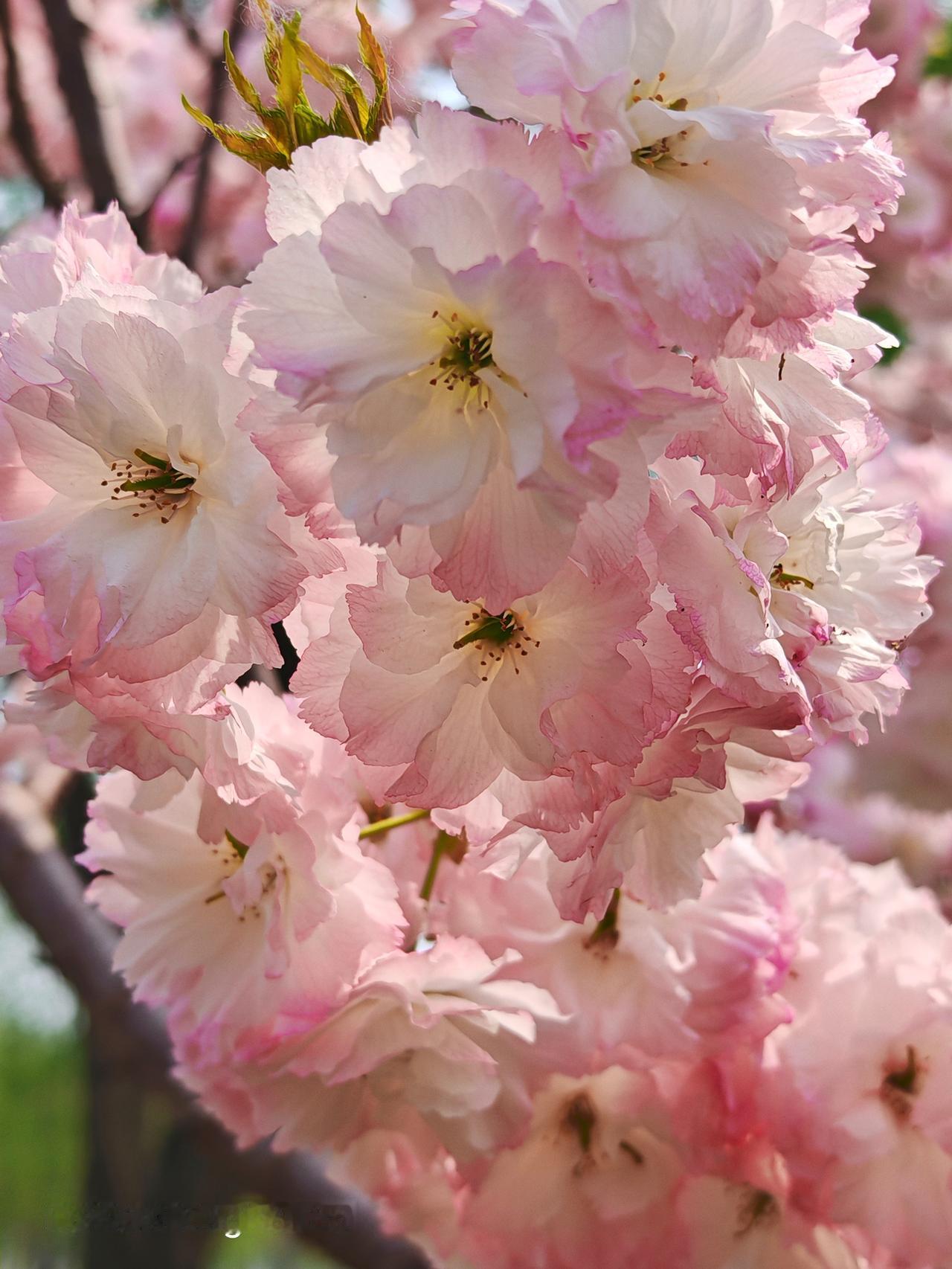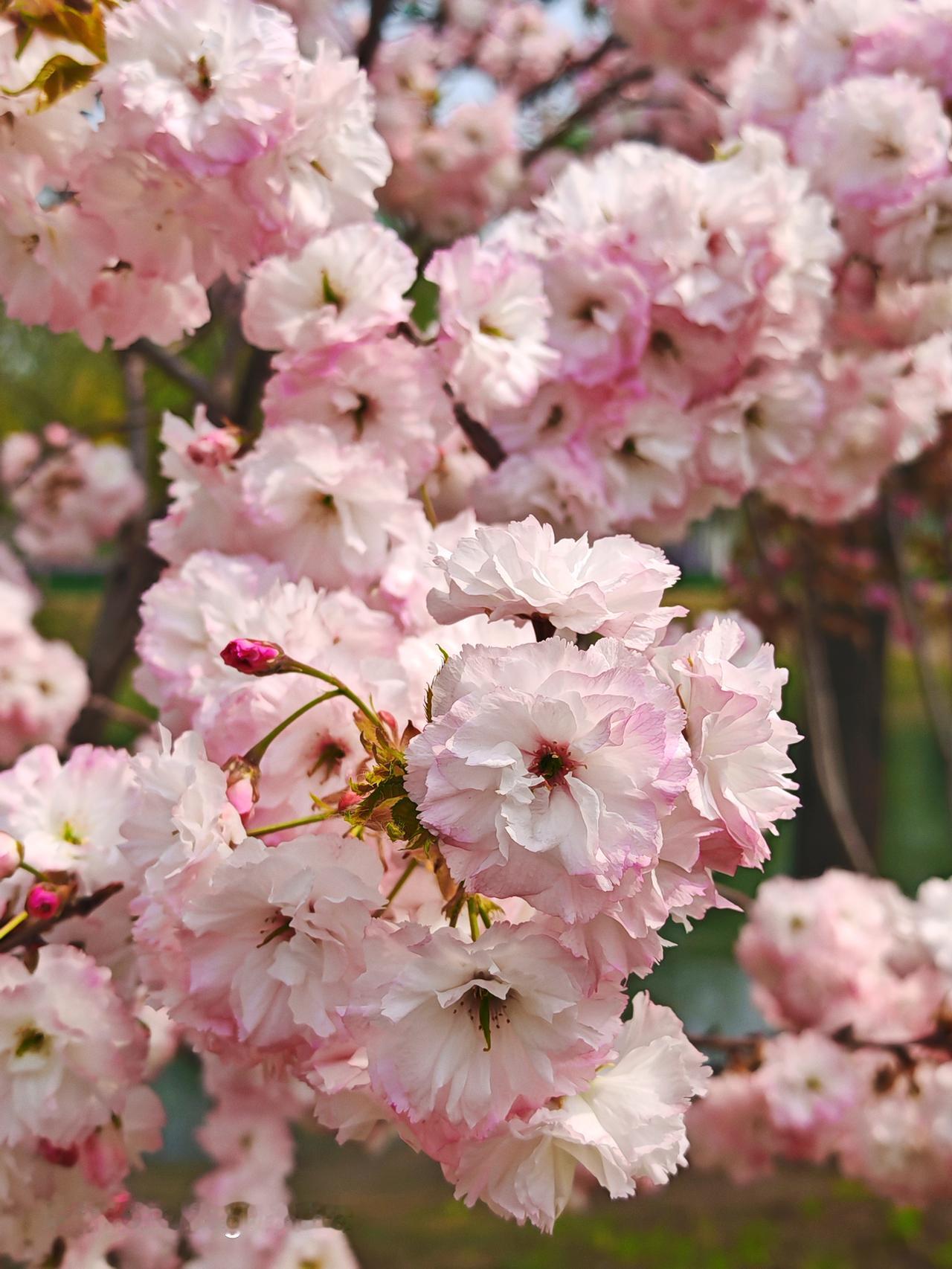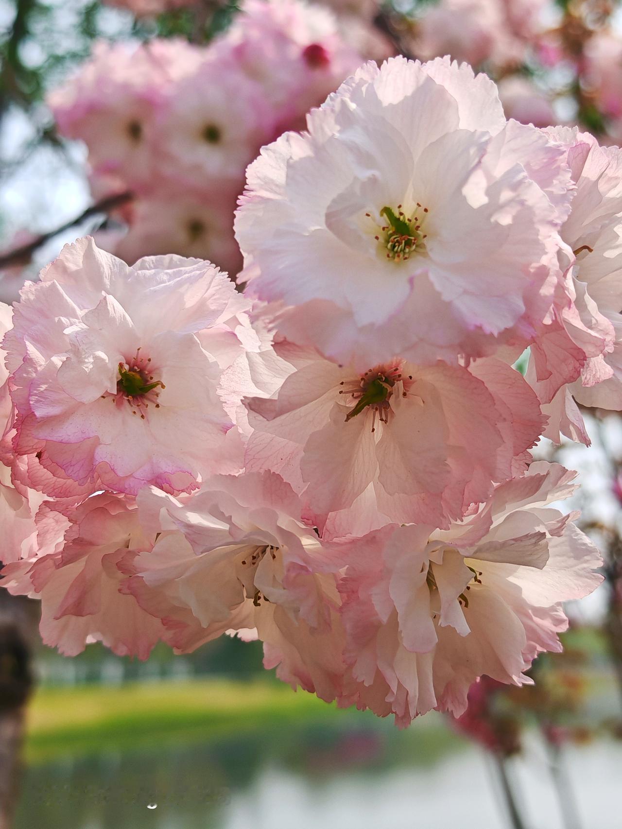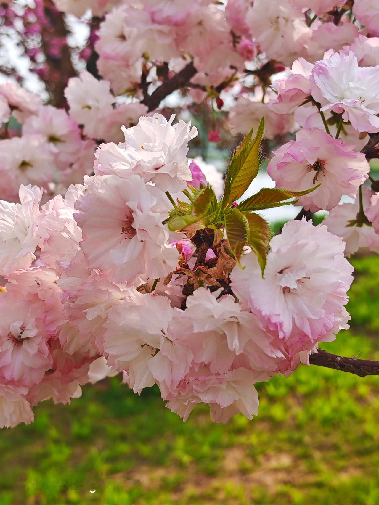 运河故道的景色简直绝了,尤其是那榆叶梅,美得让人陶醉。 漫步在运河故道边,榆叶梅肆意绽放。它们粉粉嫩嫩的,像少女害羞的脸颊。有的花朵完全展开,露出金黄的花蕊;有的还是花骨朵,小巧玲珑,惹人怜爱。风一吹,花瓣轻轻飘落,仿佛下起了一场粉色的花雨。在运河波光粼粼的水面映衬下,榆叶梅更添了几分灵动。这画面就像一幅绝美的画卷,让人忍不住驻足欣赏,感受这大自然带来的美好。