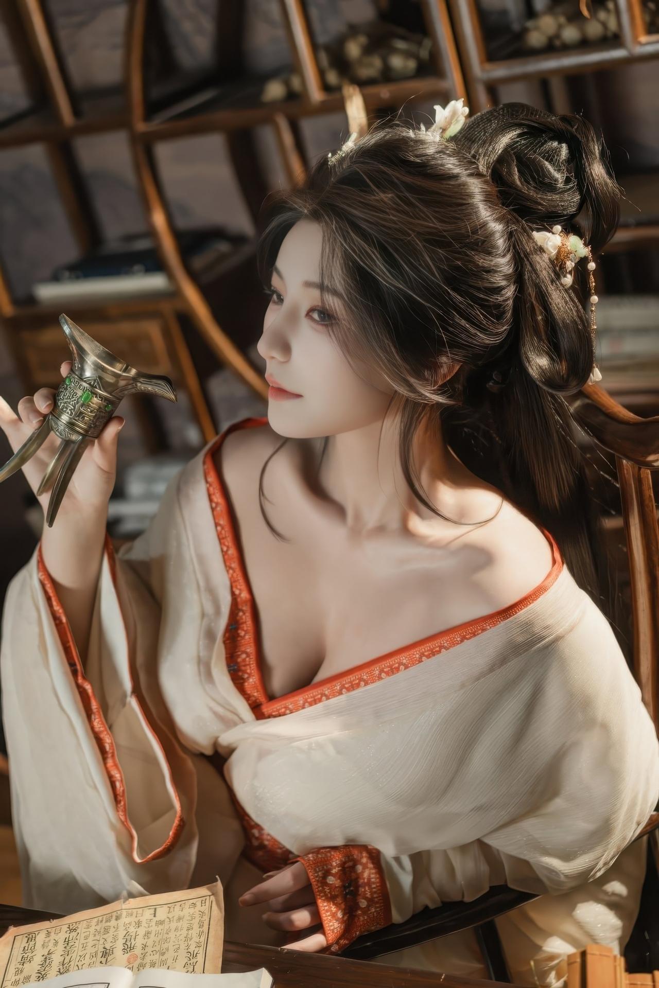 高清美图写真分享!正常穿搭,绿色健康图片,无不良引导! 《书案前,光影间,古意漫眉尖》