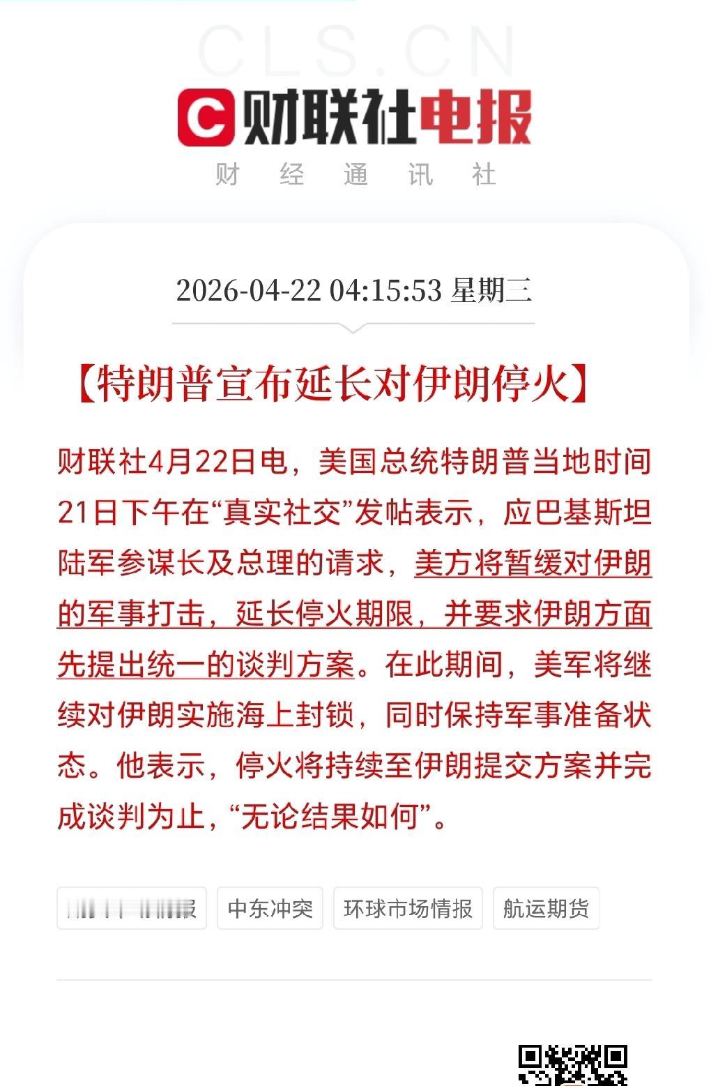 暂缓军事打击, 停火期限延长! 最后时刻,老特宣布延长对伊朗停火。此前谈判进展不顺,隔夜美股一度走低。 之前市场因为和平协议有望达成一路上涨,大家都盼着能迎来安稳的市场环境。可现在看来,和平短期内怕是难以实现了。 资本市场也挺有意思,对冲突都有点“免疫”了,更多地回归到自身情况。要是美伊出现新问题,大概率也会低开消化。 不过现在处于修复尾声和财报末期,得留意市场分化。
