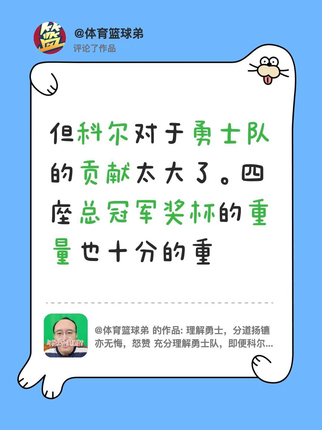 我评论了@体育篮球弟 的作品:但科尔对于勇士队的贡献太大了。四座总冠军奖杯的重量也十分的重