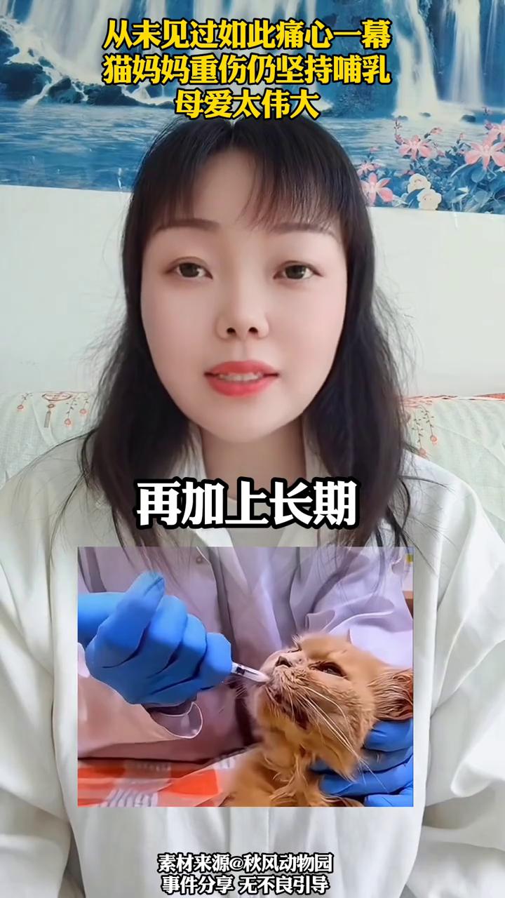 从未见过如此痛心一幕,猫妈妈重伤仍坚持哺乳,母爱太伟大。 秋风动物园。 从未见过如此让人痛心的一幕,猫妈妈为了哺育刚出生不久的孩子,不幸被过往的汽车撞倒在地,可她却依然舍不得闭上自己的双眼,竟然还在用自己仅存的奶水哺乳着孩子。虽然过往的路人全都纷纷围了上来,但却没有一人愿意伸出援助之手。 好在此时一位善良的小哥路过了这里,看着猫妈妈奄奄一息的模样,还招来了大量的苍蝇,小哥赶紧对猫妈妈展开了抢救工作。随后在附近找来了一些清水喂给他,希望这样能成功唤醒猫妈妈。 然而让人感到痛心的是,猫妈妈依然没有任何的反应,可小哥却一直没有放弃。在把小奶猫们装进救助箱之后,小哥决定把猫妈妈带到宠物医院抢救,毕竟这样还会有一线生机。 然而当小哥抱起猫妈妈那一刻,全身瘫软无力的他看上去让人心疼不已。在到达宠物医院后,医生紧急对猫妈妈进行了全方位的身体检查,发现猫妈妈一直高烧不退,医生还免费提供了药物治疗,希望以此来帮助这位伟大的母亲。 可此时的猫妈妈却依然昏迷不醒,骨瘦如柴的身体让医生都为之惊讶,再加上长期的营养不良,导致猫妈妈的身体极度虚弱,医生最后也只好采取了输液治疗,小哥则在一旁默默地守护照顾。 没想到在医生和小哥的共同努力下,猫妈妈终于顺利的脱离了险境,成功的苏醒了过来。起来之后的猫妈妈却顾不上身体的疼痛,还在四周不断地找寻着孩子们。可满脸憔悴的猫妈妈此刻还依然十分的虚弱,如果后期再得不到良好的照顾,肯定还会有悲剧的发生。 虽然小哥家里也并不富裕,但是依旧决定收养猫妈妈。第一次来到陌生的新环境,猫妈妈显得十分的紧张,不停地在房间里走来走去。好在看到了孩子们之后,猫妈妈这颗悬着的心才慢慢放了下来,直接便侧身躺了下来喂孩子们喂奶。 这样无私而又伟大的母爱,看着一旁的小哥热泪盈眶。最后希望猫妈妈一家,能永远幸福快乐。祝愿善良的小哥能够好人一生平安。