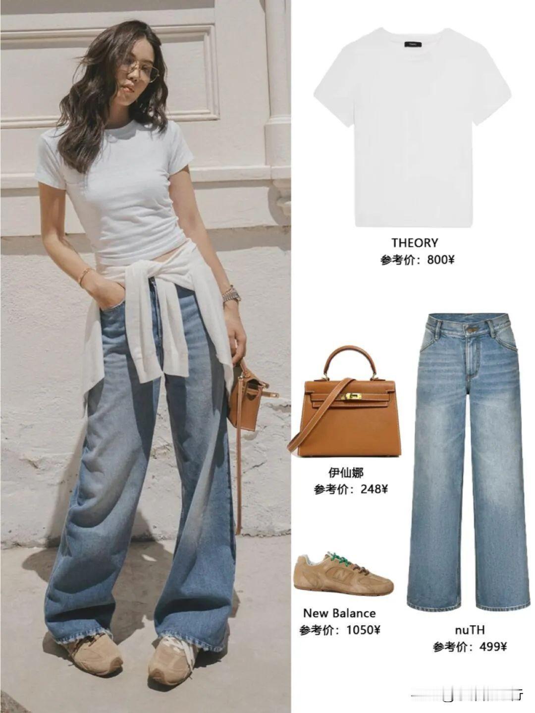 简约而不简单,确实是女神范儿的真谛,一条灰白牛仔裤搭配白色内T!时尚女性气质气