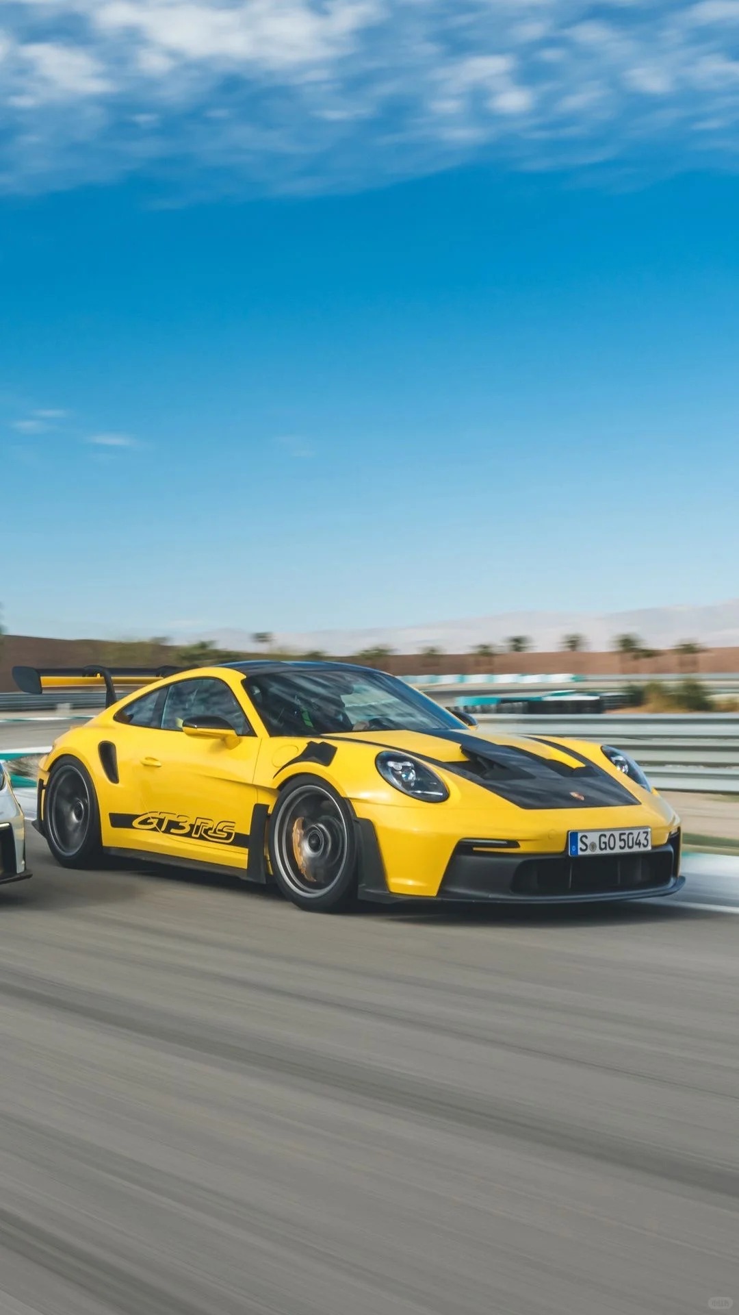 早上好,蓝天白云配上黄黑保时捷,壁纸完成式绝美车片