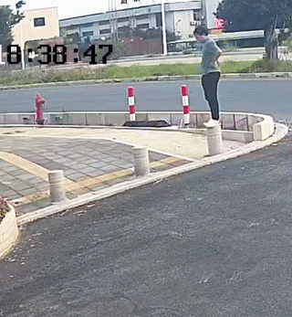 男子站在马路边上闲着没事干,非要练习一下跳跃石柱子? 结果他重摔在了地上! 幸好他身上并没有受伤? 真是看起来太奇葩了。社会奇葩事真多