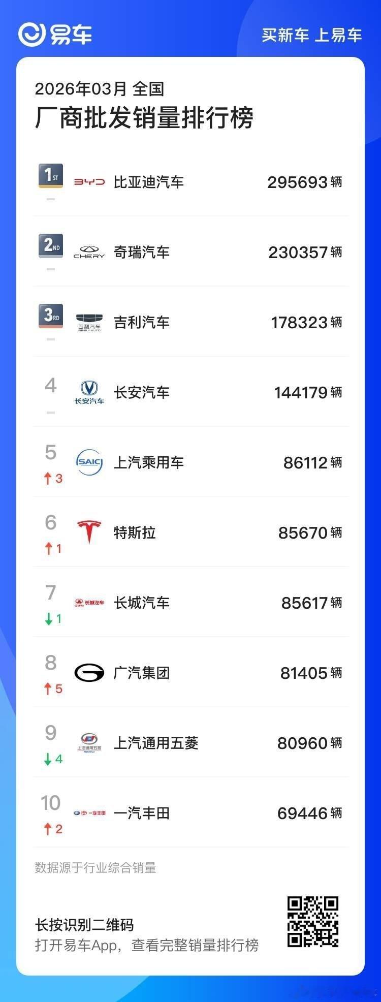 一汽丰田官宣2026年的产销量目标是超过80万辆,看来实现销量同比增长就是一汽丰田最重要的目标。从2026年第一季度的销售表现来看,其批发销量高于零售销量1万辆,80万辆的目标,需要一汽丰田疯狂一把才能实现。一汽丰田2026年目标超80万辆
