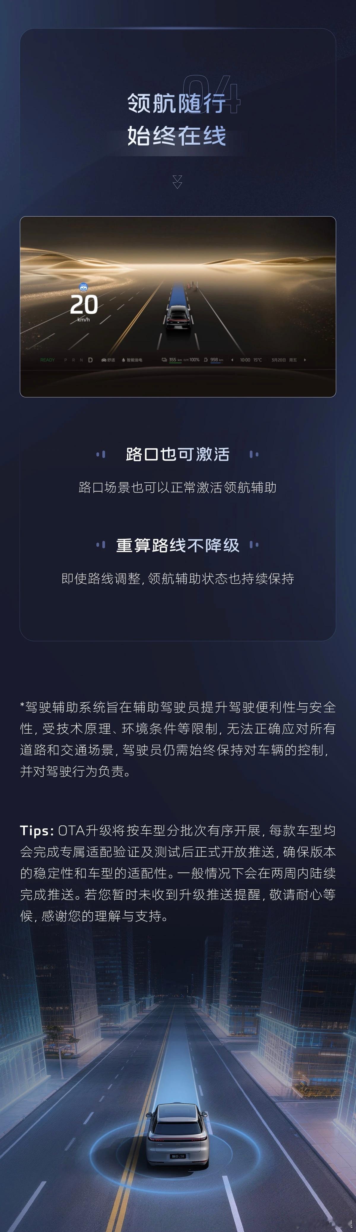 3.这次更新的内容更多的都是模型的提升和场景能力应对的提升,比如说增加复杂路况情况下变道的成功率提升通过路口的准确性,还有潮汐车道的通过能力。其实IMAD从它诞生的第一天起,就非常注意这些小细节。还记得最早的IMAD是可以进行汇流入口规避,还有提供增强型信心辅助功能,这些小细节都非常的贴心。如果你用过IMAD,你就会有很深的感触。比如他们应该会更有发言权。