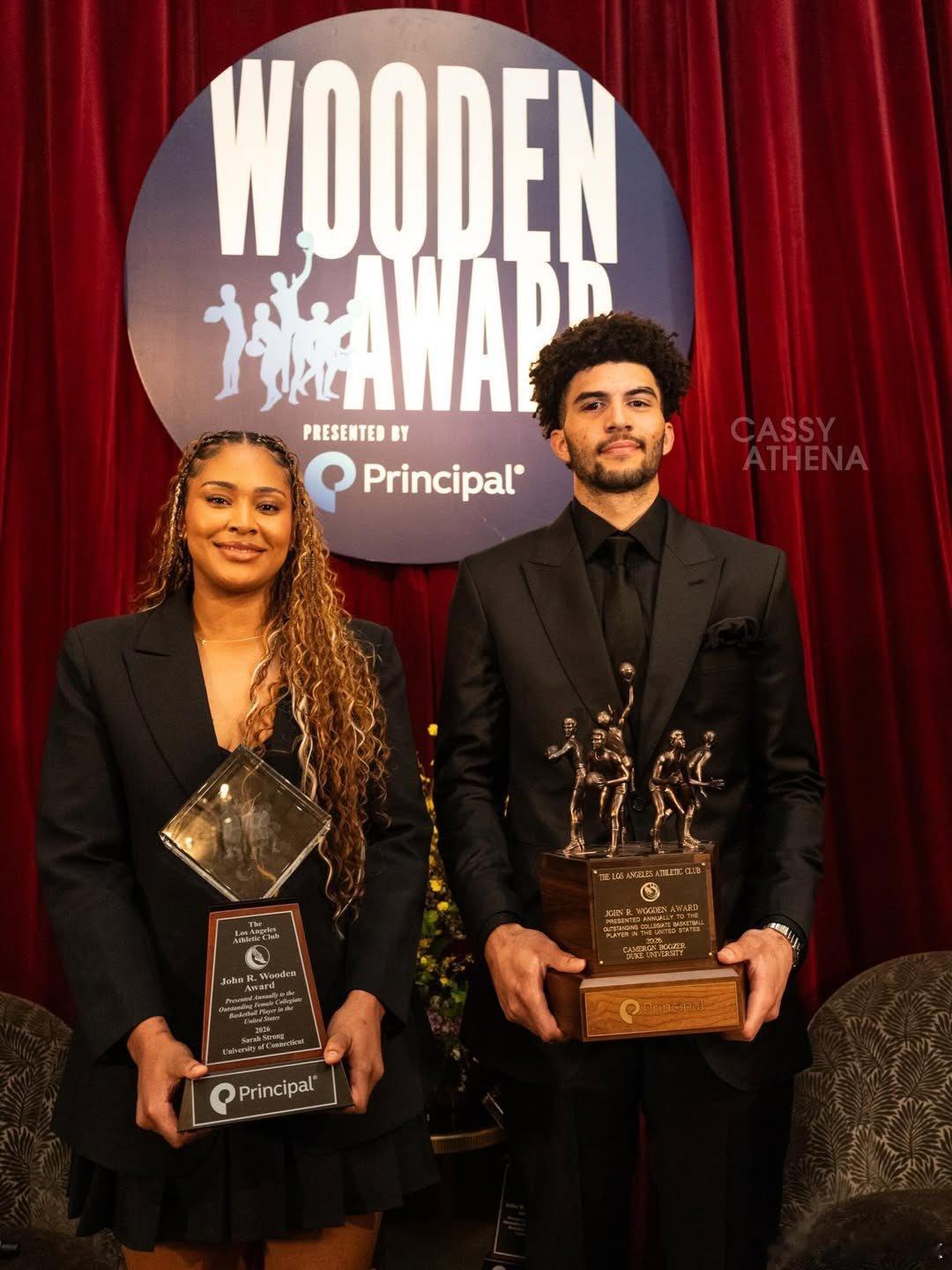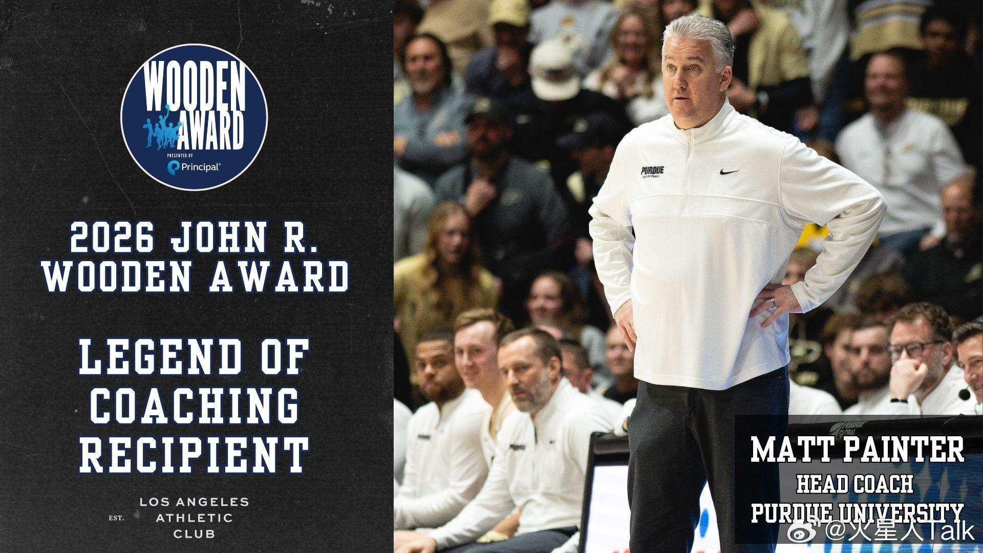 2026年约翰·伍登NCAA男篮 最佳球员Cameron Boozer,传奇教练奖得主普渡大学Matt Painter。 NCAA女篮 最佳球员Sarah Strong。