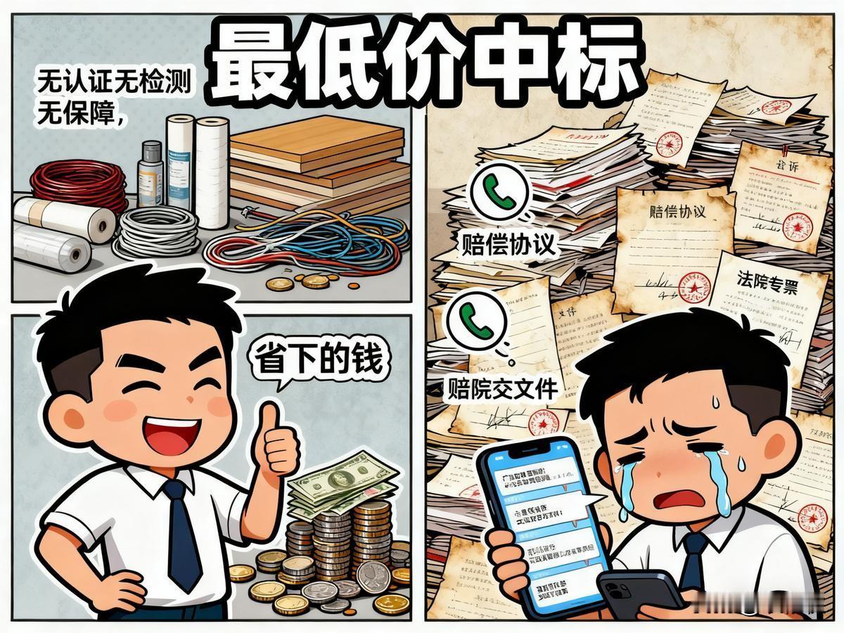 装修报价越低越好?错!最低价中标,最后全是输家,别拿命赌 你是不是也这样?装修前拿着预算,恨不得把报价单砍到地板价。谁报得低就选谁,心里还美滋滋:我多会过日子啊! 可你知道吗?家装市场里,最低价中标,从来就没有赢家。 🏚️ 你以为省了钱,其实是开了个“无底洞” 邻居老张家装修,找了一家报价最低的公司,128平全包才6万8。开工不到一个月,工头说水电要加钱、防水要加钱、瓷砖要加钱……不加就停工。最后硬生生花了12万才装完,比正常报价还贵。 更惨的是,住了一年,卫生间漏水漏到楼下,砸了重做又花两万。老张说:“早知道这样,我当初就不该贪那几万块便宜。” 🔧 低价背后的“魔术”,全是坑 材料偷梁换柱:合同写“品牌水管”,实际用的是杂牌回收料,三年就脆化漏水。 工艺能省则省:墙面不挂网、防水只刷一遍、电线不穿管……你看不见的地方,全是隐患。 增项无底洞:先低价把你骗进来,然后水电、吊顶、柜子……一样样加钱,你不掏就停工。 售后等于没有:低价公司大多没资质、没固定工人,装完收钱就失联,你找谁维修? 👨👩👧 最可怕的,是拿家人的健康“赌” 低价装修最爱用劣质板材、胶水、油漆,甲醛、苯超标几倍甚至几十倍。你省下的那几万块,可能换来孩子十年的鼻炎、老人的哮喘,甚至更严重的病。 装修不是买白菜,是未来十年、二十年的家。 ✅ 那到底该怎么选? 不要只看总价,要看单价和工艺:乳胶漆刷几遍?防水做多高?电线用多大? 去工地看真实案例:别信效果图,看正在施工的现场,看隐蔽工程。 合同写死:材料品牌、型号、规格、工艺标准、增项比例(一般不超过5%),全部白纸黑字。 宁可多花2万选个靠谱的,也别省那点钱买个“不定时炸弹”。 记住一句话:家装市场里,便宜没好货,好货不便宜。别用低价“赌”你一家人的安全和舒心。 💬 你家装修有没有被低价坑过?评论区说说,帮更多人避雷!