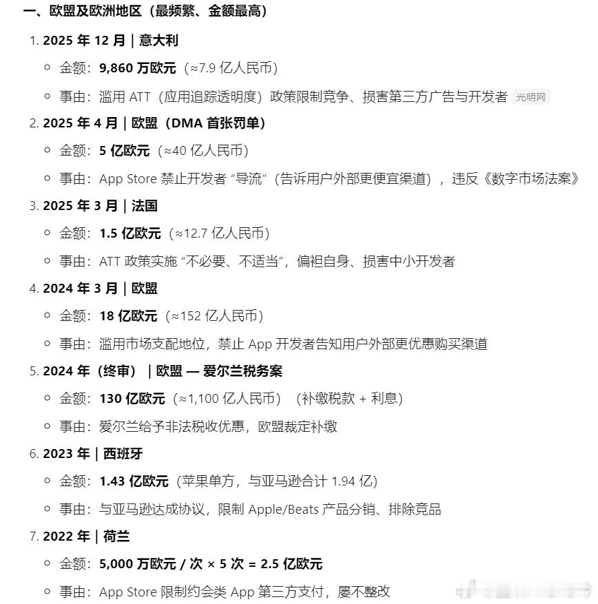 苹果或被印度罚款380亿美元 苹果被罚也是常见操作了,本身就是封闭生态+高抽成+限制竞争,又撞上了现在数字监管、反垄断的趋势,特别是在欧洲到处被罚。