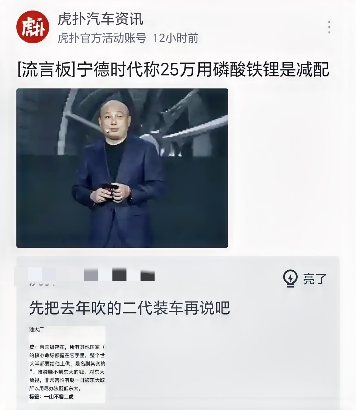 宁德时代高管说"高端用铁锂是减配",结果被网友怼 "高端用三元锂是减命"。 其实三元锂只是贵,但是性能被铁锂吊打。比亚迪的高端铁锂,充电性能、放电性能、极端负载稳定性、寿命及安全性都吊打三元锂,连能量密度和低温性能都可以和三元锂打个有来有回,就是不外供别家买不到罢了。