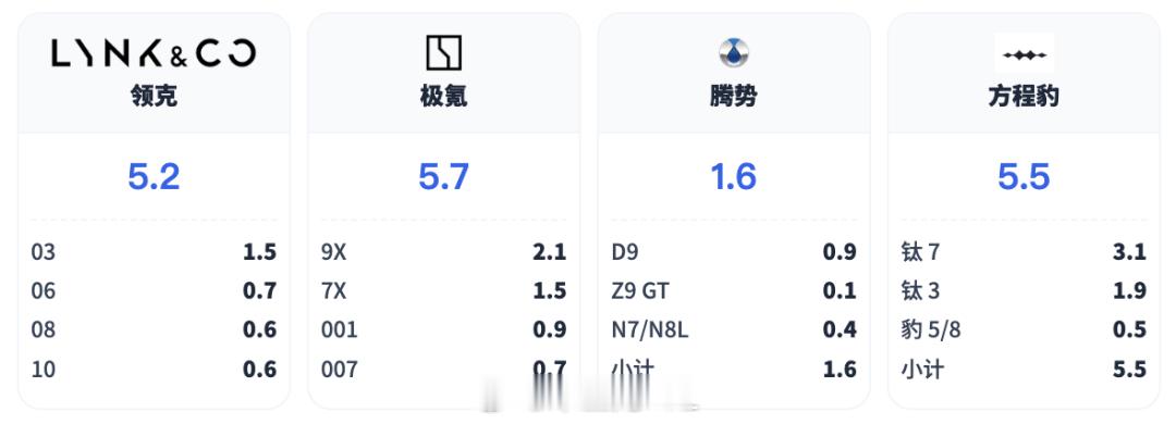接下来第二波是比亚迪(腾势、方程豹和仰望)、吉利(领克+极氪)、长城(魏牌+坦克)和上汽(智己)、东风、广汽一波来做中高端品牌,现在还能坚持20万的,可以看看现在的情况