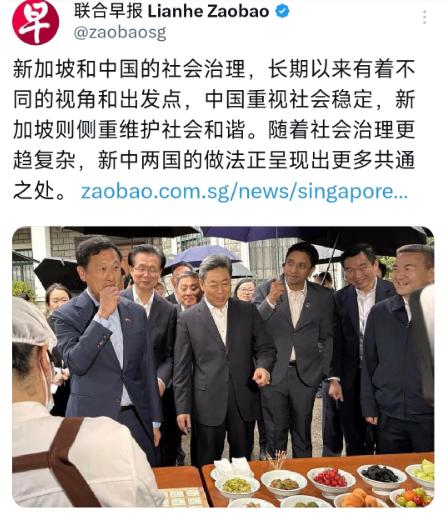 新加坡联合早报针对中国和新加坡的治理侧重写了一篇文章,他们表示中国偏向于社会稳定,而新加坡更偏向于社会和谐,而现在两国的方略越来越往和而不同的方向靠。 这件事就是近期中新治理交流频繁的时候被热议的,咱们国土辽阔、人口众多、地域差异很大,治理首先要守住大局不乱,用规整统一的规则稳住民生、治安、发展节奏。 不管城乡差距、民族差异还是外界波动,都先保障整个社会平稳运转,不出现混乱动荡,各行各业才能安心发展。就像网格化基层管理、统一民生保障政策,都是先把底盘稳住,再慢慢优化细节,不轻易打乱整体节奏。 新加坡地方小、民族宗教复杂,华人、马来人、印度人混居在一起,所以他们治理重心放在人与人、族群与族群之间和睦包容。 用组屋族群配比、多元文化包容政策,不让不同群体产生隔阂矛盾,大家互相体谅、彼此包容,就算想法不一样、习俗不一样,也能和平共处,主打一个柔性调和,减少社会对立撕裂。 以前很多人觉得两边路子完全相反,一个重秩序安稳,一个重人情和睦,其实慢慢发展下来,双方都在互相取长补短。 咱们在保持整体稳定的同时,越来越兼顾多元诉求,包容不同声音、灵活处理基层矛盾;新加坡在维系族群和睦的同时,也不断强化制度底线,守住社会整体秩序不松散。 其实稳定是和睦的根基,没有安稳的大环境,再多包容也没用;和睦又是稳定的长久保障,大家相处融洽,社会才会长久安宁。 两国国情不一样,选择的侧重点自然不同,但不用非要分出高低对错。就像两家过日子,一家先把家里规矩理顺、日子稳住,一家先把家人邻里处好关系,走着走着就明白,安稳与和睦缺一不可。 小编认为两国不用照搬彼此模式,守住各自优势、互相借鉴长处,保留不一样的治理特色,又朝着共同向好的方向调整,正是和而不同最好的样子。 彼此尊重差异、互补共赢,不管是民间往来还是国家合作,都能长久平稳走下去。 以上是小编个人看法,如果您也认同,麻烦点赞支持!有更好的见解也欢迎在评论区留言,方便大家一同探讨。