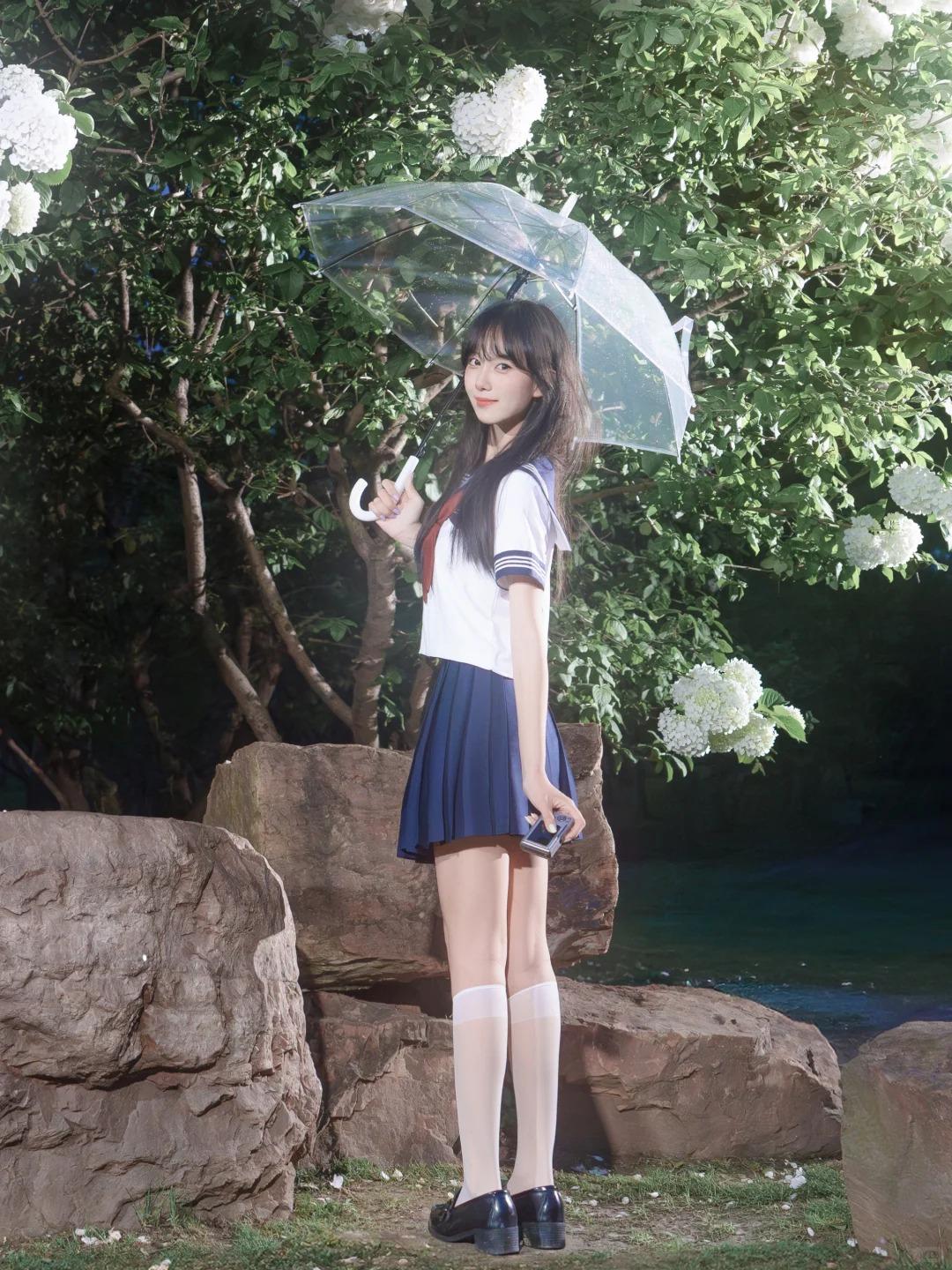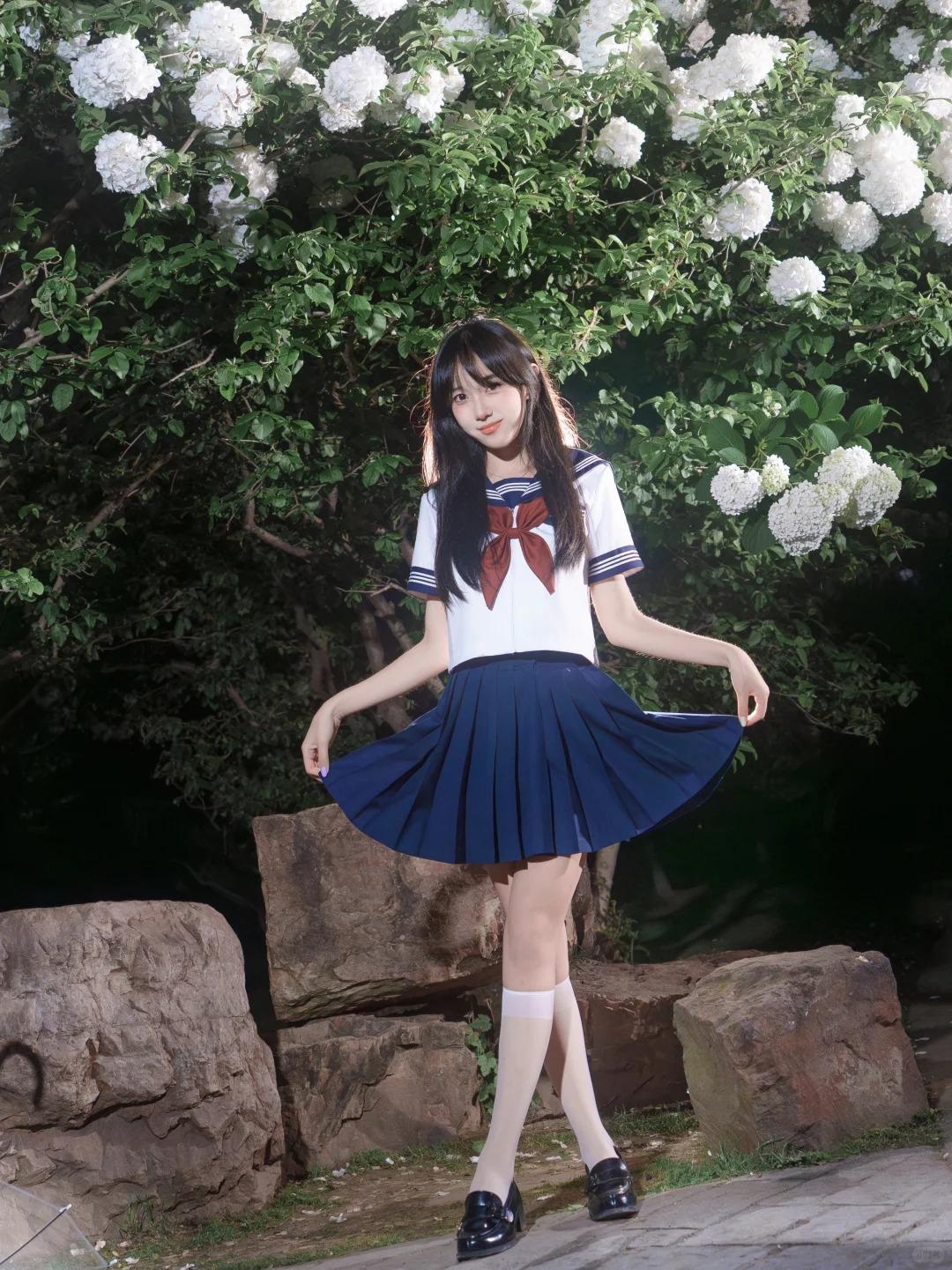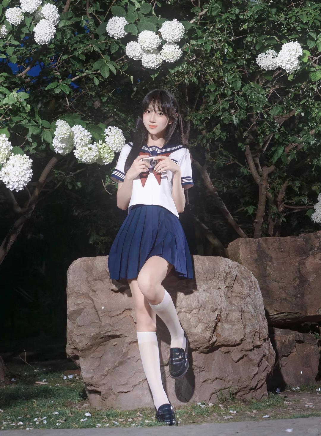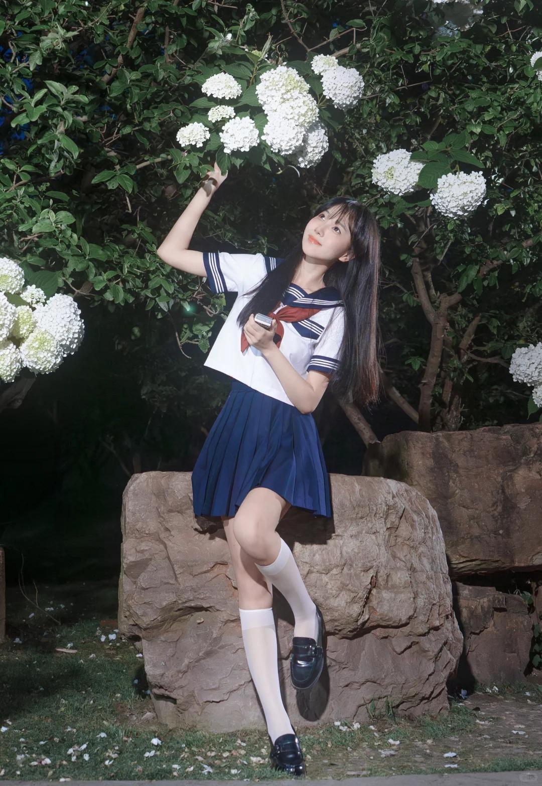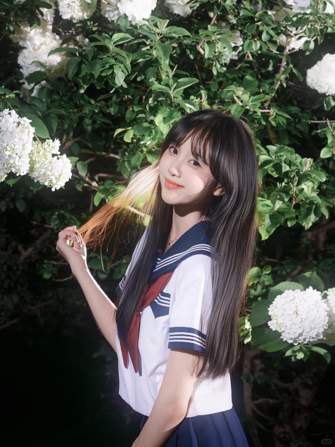 放学别走,今晚的绣球花和晚风都在等我✨ 换上水手服,趁着夜色溜到开满白绣球的小花园。 补光灯一打,花团像裹着月光,风里飘着软乎乎的甜香。 举着ccd随便按两张,发丝和花瓣都在发光,像从日剧里走出来一样。