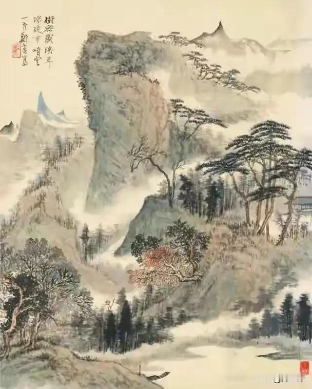 郑午昌,生于1894年,名昶,号丝鬓散人,浙江嵊县人。 郑午昌的山水画艺术独具特色。他早年学画从临摹入手,对古代名家技法烂熟于心。其作品既有传统山水画的笔墨韵味,又融入了时代气息。他善于运用线条,线条刚柔相济,勾勒出山川的轮廓与质感。在构图上,他不拘一格,画面往往气势磅礴,有开合之势。比如他的《江山卧游图卷》,将山水的雄浑壮阔展现得淋漓尽致,让人仿佛置身其中。他还注重色彩的运用,巧妙地调配色彩,使画面更加生动和谐。郑午昌以其精湛的山水画技艺,在民国画坛留下了浓墨重彩的一笔。