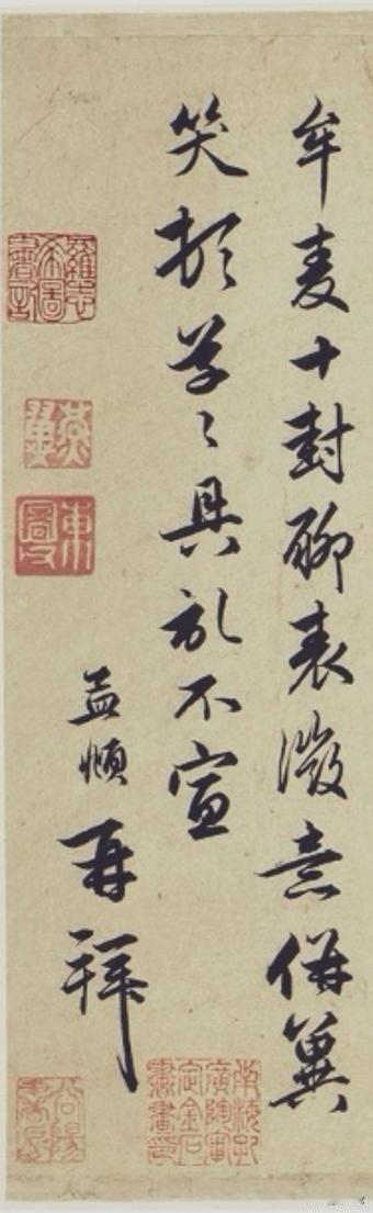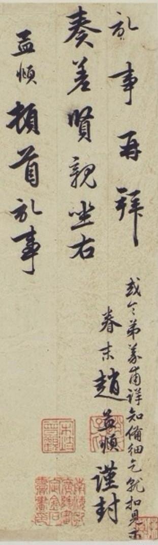 赵孟頫的《记事帖》是封感谢信,是他写给总管相公宗兄,感谢对方照顾自己兄长。这信札情真意切,用笔从早年的圆厚方阔变为清劲妍美,不躁不厉,稳健端庄,风骨内涵,温润闲雅,笔法直追王羲之。 在书法上,它多以中锋为主,兼用侧锋,线条圆润遒劲,起收转折精准,能看出赵孟頫对王羲之笔法研究之深。单字多取纵势,重心平稳,通过错位、疏密、正斜实现平中寓险。整封信札随性自然,潇洒自如,墨色枯润相间,真情实意流淌在笔墨间,达到“无意于佳乃佳”的境界。不愧是赵孟頫书法的代表之作。