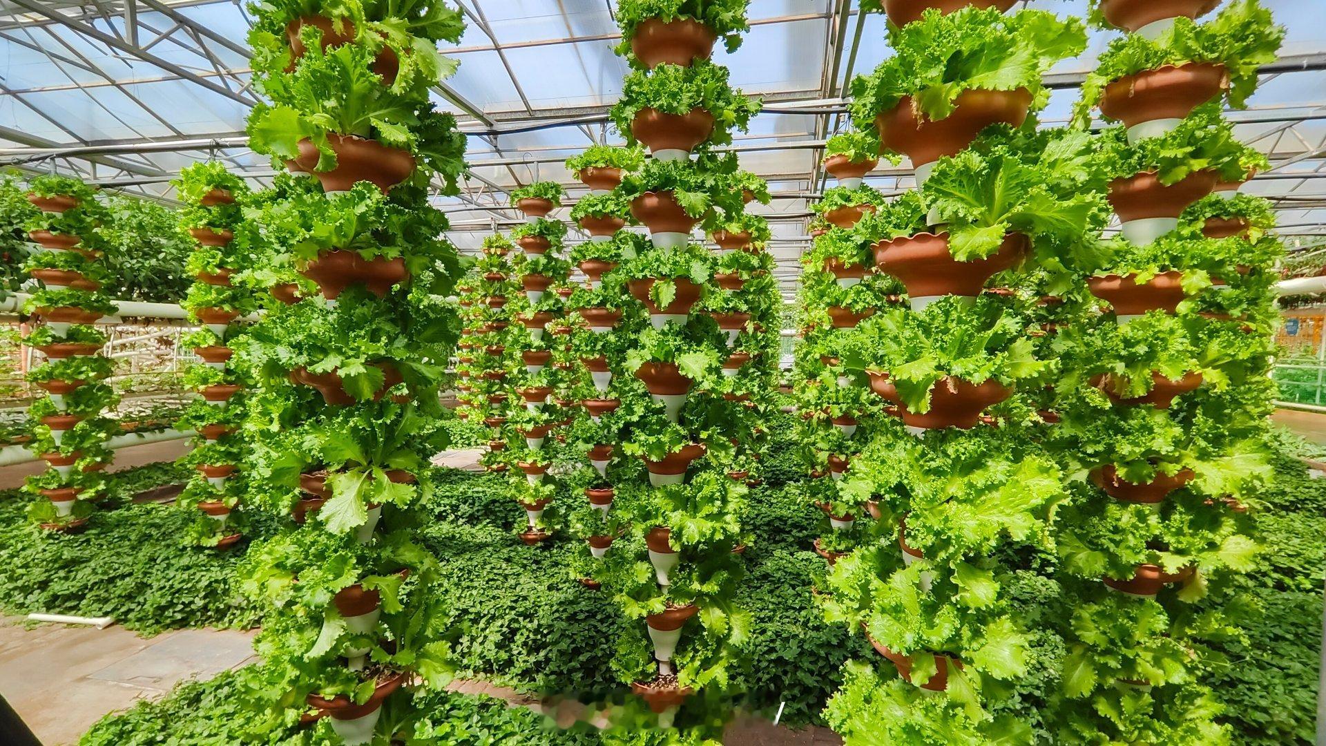 现在还在开展各种神奇的无土栽培技术,比如下面图片里的各种管道栽培技术,花盆栽培技术……