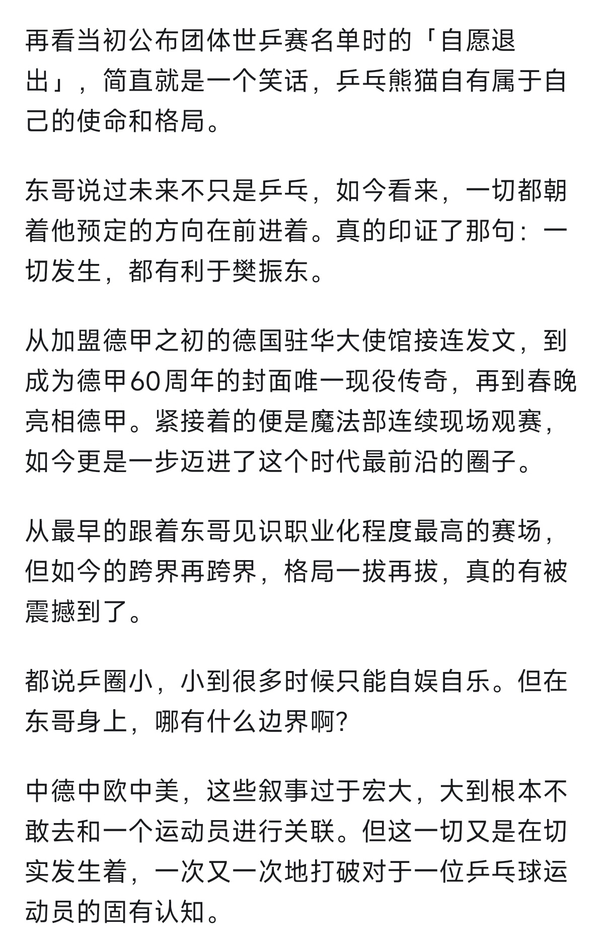 格局无疆,樊振东自成山海。 吴老所言“世界的意义必定在世界之外”在这一刻在樊振东