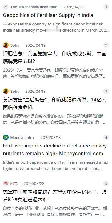 印度总理发出最后 “通牒”,如果印度没有办法在短期内得到足够的化肥保障,那么十几亿人吃饭很有可能都会成为问题。 麻烦看官老爷们右上角点击一下“关注”,既方便您进行讨论和分享,又能给您带来不一样的参与感,感谢您的支持! 印度这些年一直以“全球粮食出口大国”自居,靠的是庞大的农业产量。但很少有人深究,这种产量是建立在什么样的地基上的。真相是,印度的农业命脉牢牢攥在别人手里——国内几乎找不到钾盐矿藏,钾肥进口依赖度高达92%以上;磷肥超过一半要靠外购,磷矿石的进口依赖度也高达90%左右;就连印度最引以为傲的尿素产业,看着是本土工厂在生产,实际上生产尿素所用的天然气,将近六成依赖进口卡塔尔等中东国家。 说白了,这哪是什么农业自主,根本就是把进口原料拉回国内换个包装,勉强撑起一个“农业组装强国”的门面。 长期积累的结构性短板,在今年彻底暴露了。 今年2月底,美国和以色列对伊朗发动军事打击,伊朗随即采取反制措施,霍尔木兹海峡航运受到严重冲击。这条海峡承载了全球约三分之一的海运化肥贸易,是名副其实的“粮道”。航运一受阻,印度进口天然气的通道直接被切断了七成以上。天然气断供,尿素工厂只要开工就亏本。短短时间内,印度11家核心尿素工厂被迫停产,42%的尿素产能一夜之间蒸发。 官方数据显示,2026年3月,印度化肥产量同比暴跌了24.6%。而就在此前的2025年12月到2026年2月,产量还一直是稳步增长的态势。这一跤摔得又快又狠。 化肥厂停工停产的同时,国内库存也在急速消耗。有消息称印度尿素库存一度仅剩200多万吨,离安全红线差了很大一截。按照正常消耗速度,这些库存撑不了多久。而春耕施肥的窗口期就那么短短的几周,错过这段时间,全年收成就基本没指望了。农民们面临的是有价无市的窘境,黑市上化肥价格涨了三倍,普通农户根本承担不起。 更让印度政府头疼的是,自己手里握着钱,却花不出去。 全球化肥市场正在进入卖方主导的时代。印度在海外招标中的一贯做法是拼命压价、条款苛刻,加上过去在国际贸易中的信誉记录不算太好,这回吃亏了。2025年下半年到2026年初,印度多次发起大规模尿素招标,但供货商们根本不买账,要么拒绝投标,要么报价高得离谱。 比如4月6日,印度国营钾肥公司搞了一个250万吨的尿素招标,结果开标后一看价格,多数报价都在每吨1000美元以上,直接流标了——没人愿意亏本给印度供货。莫迪急得赶紧开内阁会议,追加了超过4万亿卢比的补贴,试图稳住终端价格。但补贴能降成本,造不出化肥来啊,国际市场上货源跟不上,有补贴也没用。 外交上的孤立感同样让印度处境尴尬。 美伊冲突爆发后,调解谈判竟然找了巴基斯坦当中间人。印度这些年一直标榜自己是“全球南方关键玩家”,能在各方之间左右逢源,结果真正出大事的时候,连个插话的机会都没有,风头全被老对手巴基斯坦抢了。国内反对派趁机发难,质疑莫迪政府的外交策略到底管不管用。印度在这场危机中,既丢了里子,也丢了面子。 红海和霍尔木兹海峡的航运受阻,进一步掐断了印度本来就脆弱的化肥运输通道。就算有货,运不进来也是白搭。实际上,已经有大量货物滞留在海湾地区无法起运,即使现在立刻放行,海运加上国内分销也需要大半个月,印度的春耕等不起这个时间。 印度政府也尝试了各种补救措施,包括向俄罗斯和中东紧急求援、寻找加拿大等替代供应来源、甚至向中国发出采购请求。但问题在于,全球各国都在优先保障自己的春耕需求,出口配额普遍收紧。俄罗斯虽然曾应莫迪请求大幅增加了对印度的化肥供应,但远水不解近渴,海运不畅的话,再多的合同也只是纸上谈兵。 外汇储备方面,印度的情况也不算宽裕。截至2026年4月初,外汇储备约6870亿美元,听起来不少,但这是在中东冲突爆发后多次动用储备干预汇率的结果。印度卢比承受着不小的贬值压力,如果国际市场化肥价格继续飙升,印度能否以足够快的速度调动足够多的美元去全球扫货,还是个巨大的问号。毕竟,在全球卖家市场中,出价最高、付款最稳的买家才有优先权。 更让人担心的是连锁反应。世界粮食计划署曾警告,如果中东战事持续到6月仍未结束,全球可能新增近4500万人陷入严重饥饿。印度作为全球人口第一大国,其粮食减产的影响绝不仅限于本国。一旦印度被迫限制粮食出口甚至转向进口,国际粮价将面临新一轮暴涨,全球最脆弱的粮食净进口国将首当其冲。 印度农业经济学家指出,印度农业仍然严重依赖化肥,任何供应的中断都会迅速引发焦虑。农民们祈祷战争早点结束,因为无论远在何方,战火最终都会殃及他们的田地。这场由化肥短缺引发的危机,正在南亚快速蔓延,而谁也不知道下一步会走向何方。