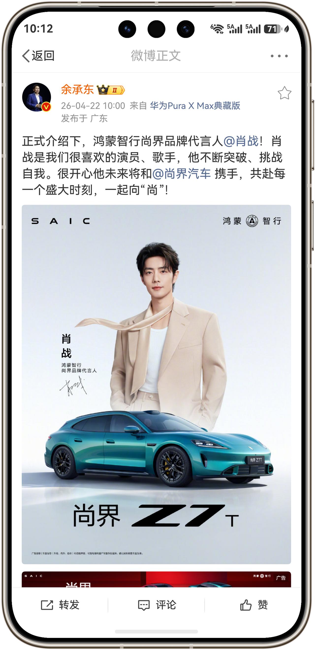 重磅消息!余承东亲自官宣尚界汽车代言人—肖战!尚界Z7和Z7系列即将发布,让我们