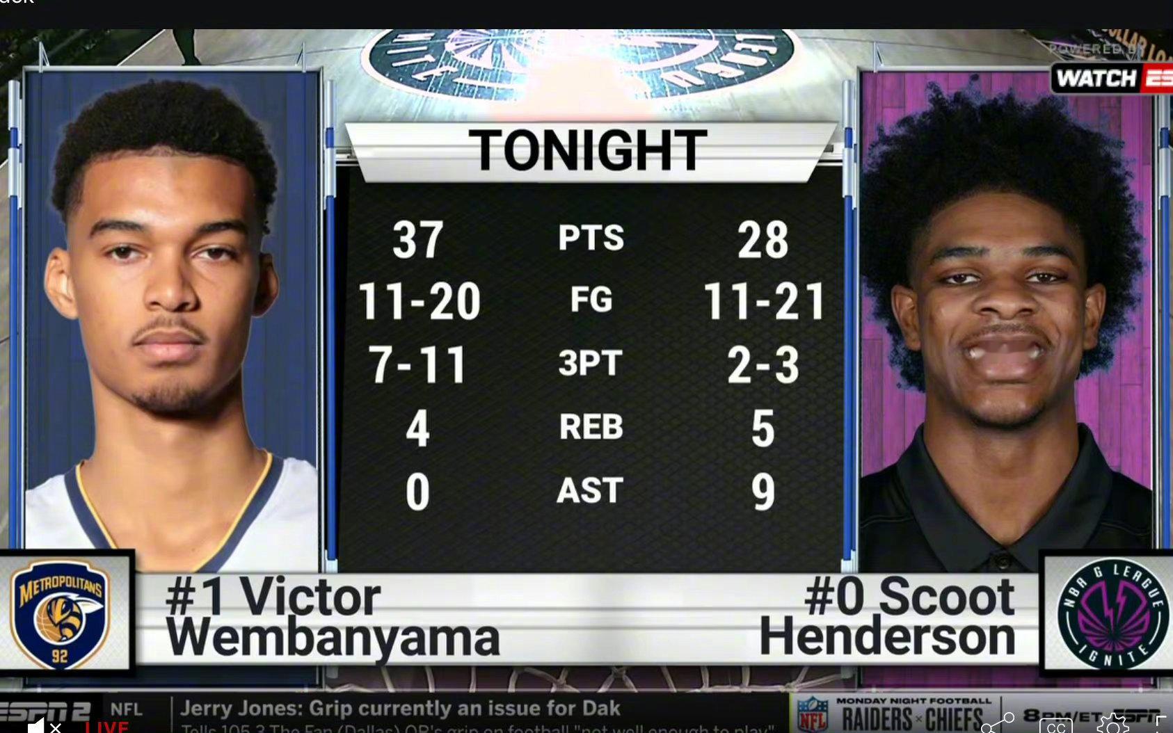 2022年10月5日,当时还在点燃队的亨德森迎来了和文班的首次对决,亨德森带领点燃队122-115击败巴黎大都会92!