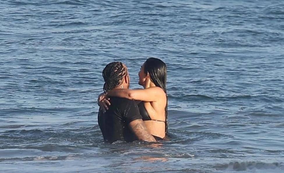 金卡戴珊汉密尔顿海里亲吻 金·卡戴珊和新男友F1车手刘易斯·汉密尔顿日前在加州马里布海滩度假,两人在海里拥抱、亲吻,构图略有幽默~