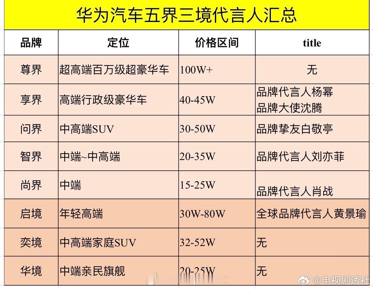 华为汽车五界三境代言人汇总华为汽车五界三境代言人汇总华为汽车代言人华为汽车五界三境代言人汇总